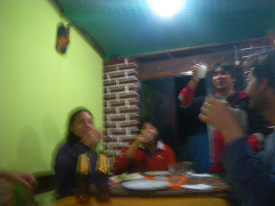 Wir hatten ein gutes Essen und bekamen Pisco Sour auf Kosten des Hauses. Ich zahlte US-$30 für die Zipline morgen, wie auch noch 4 andere. Heute wäre noch Disco angesagt aber alle waren fertig – viel Schlaf war besser angebracht nach diesem langen Wanderag.