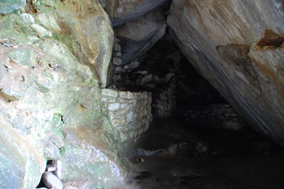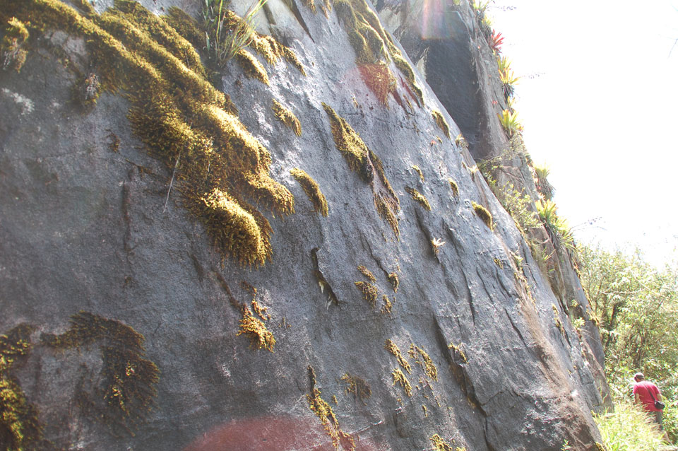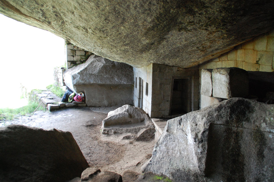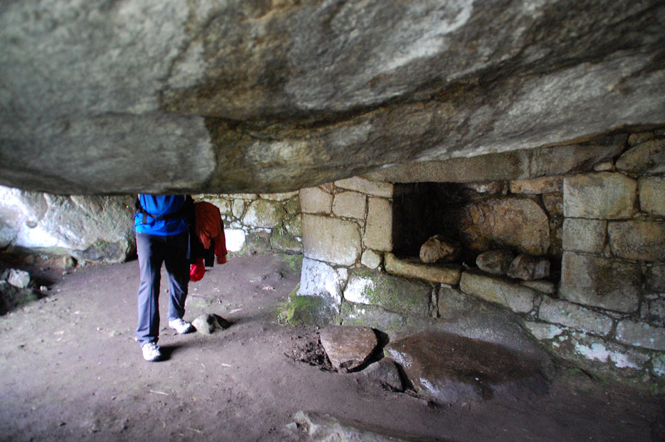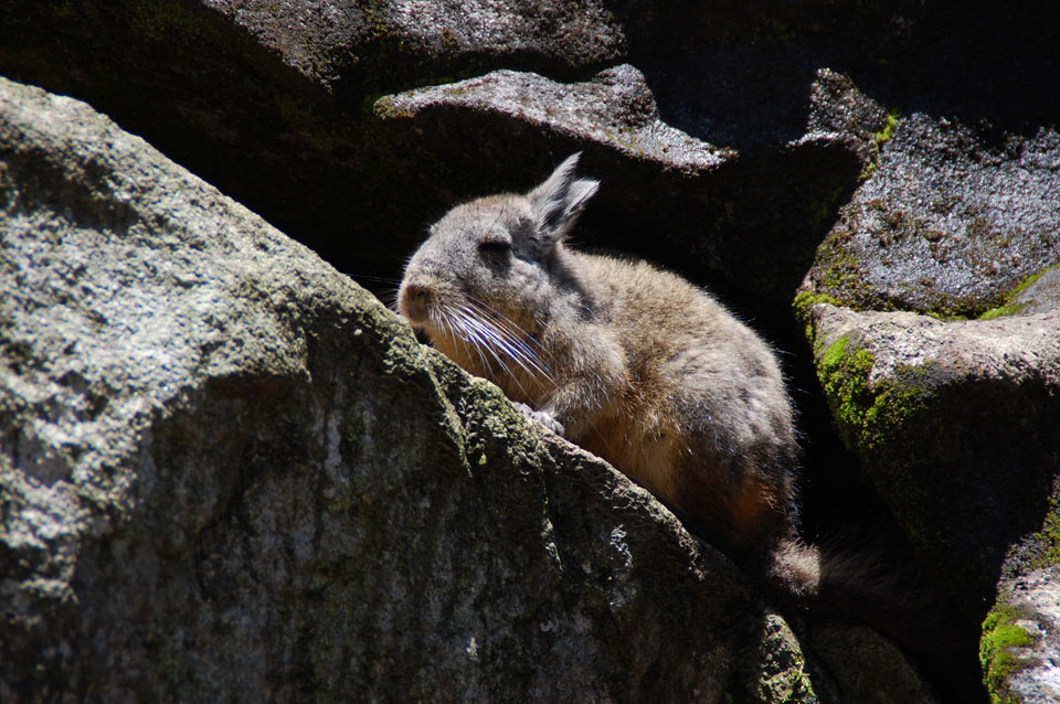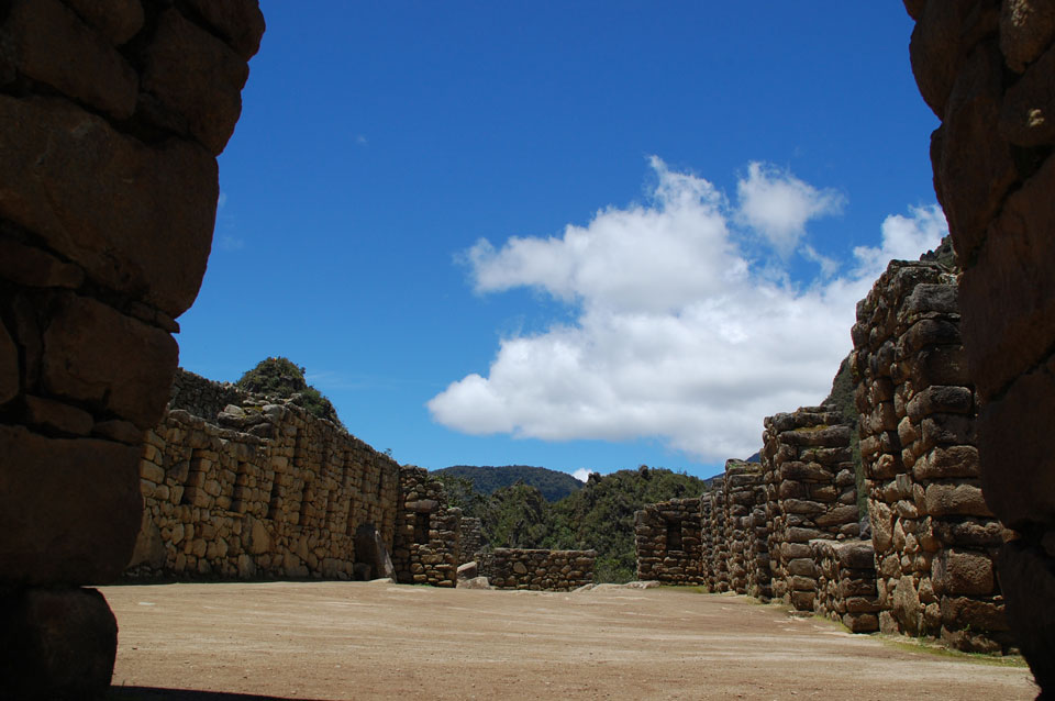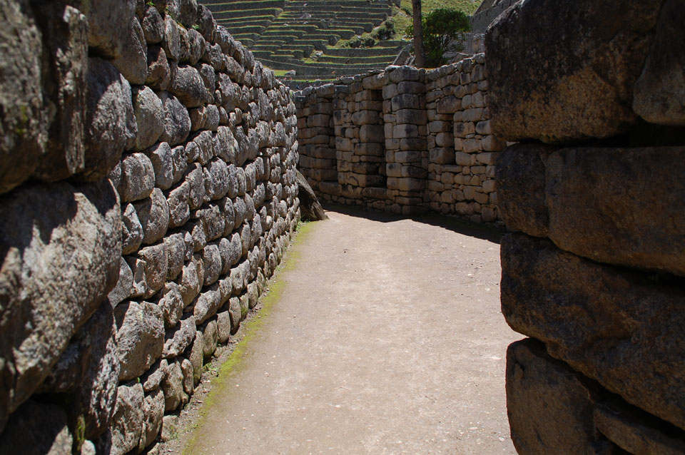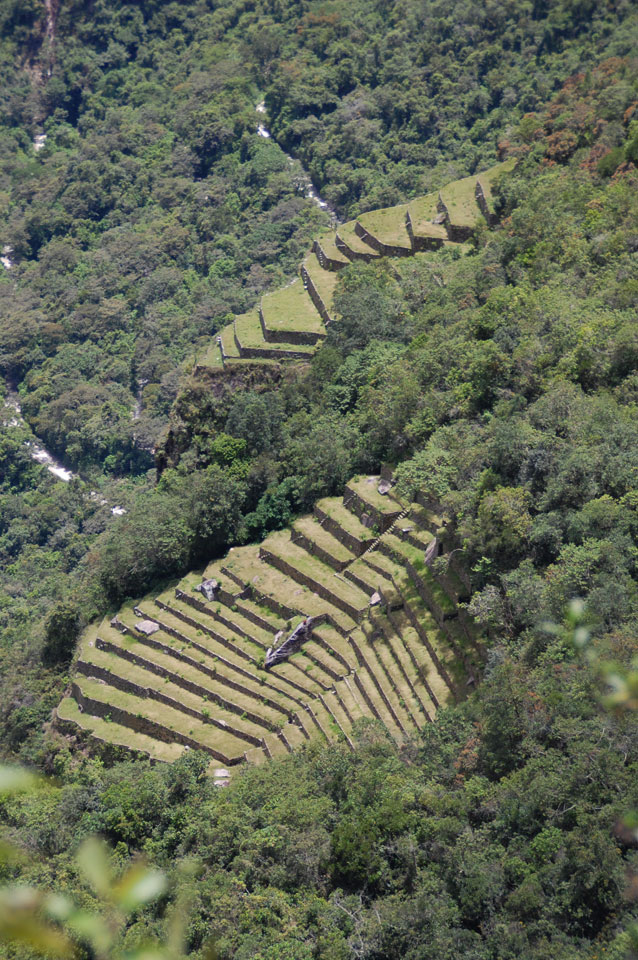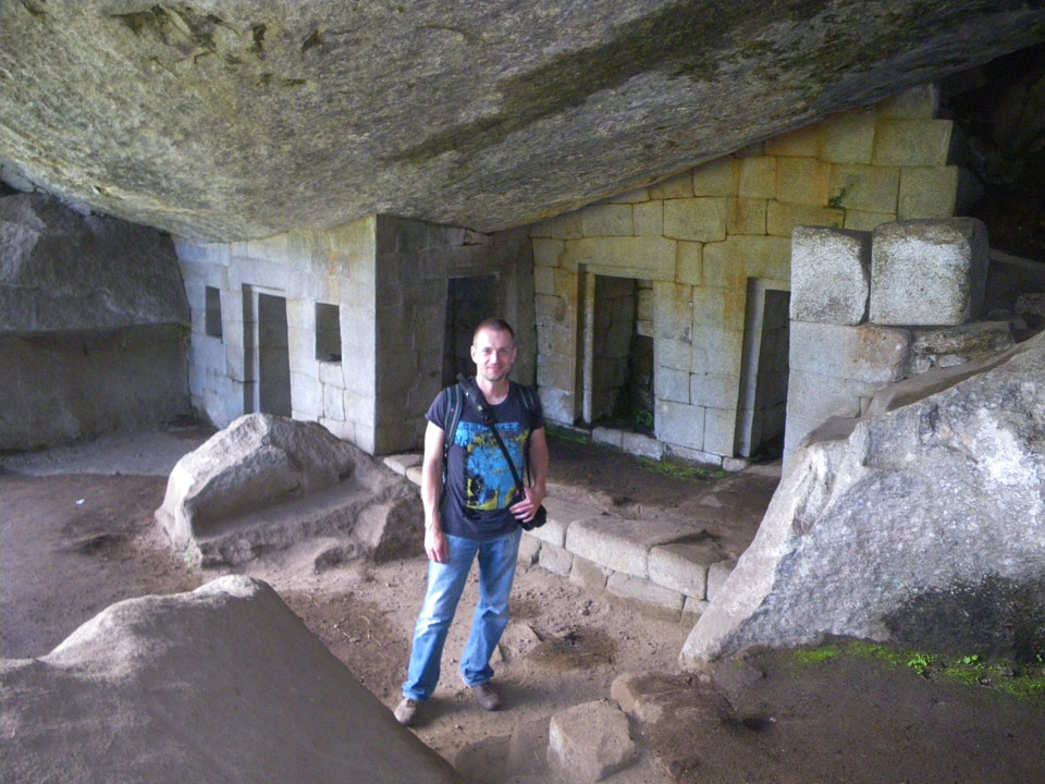 Die Kanadier rauchten einen und ich kletterte herum, entschied mich für den Abstieg zur Gran Caverna. Der sollte lang sein aber einfacher als den gleichen Weg zurück. Es ging steil bergab, sogar mit ’ner Leiter manchmal. Dann unten waren wieder ein paar Höhlen, Ruinen und Steine, wie ein Mondtempel. Wieder hoch staunte ich nicht schlecht, Machu Picchu sollte 1 1/2 Stunden brauchen?! Ich traf die Kanadier, die auch diesen Weg wählten. Jetzt gging’s an die Substanz. Es schien, als kletterten wir wieder ganz hoch. Die Treppen waren endlos, viel Schweiß ließ ich auf diesem Weg.