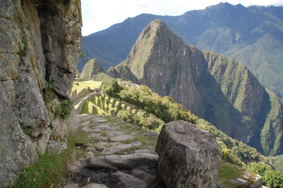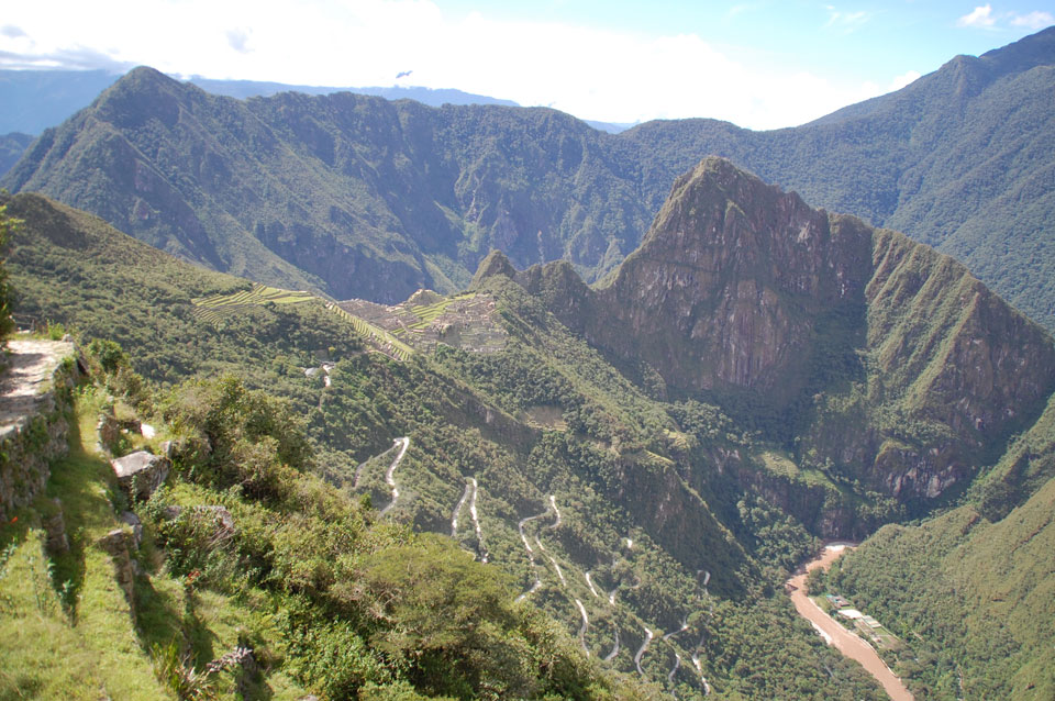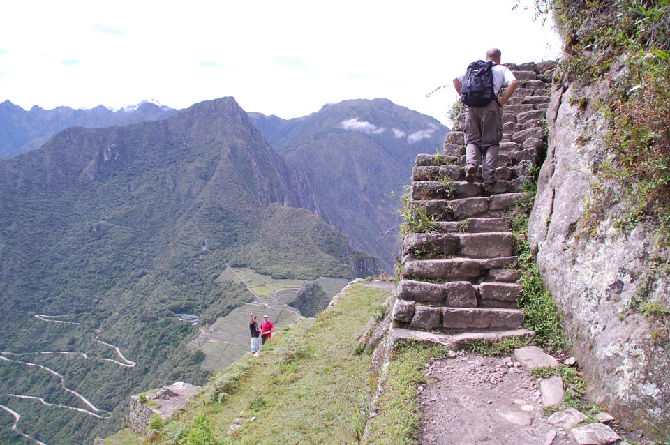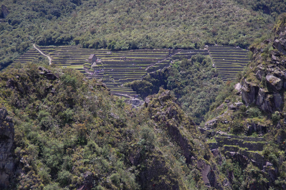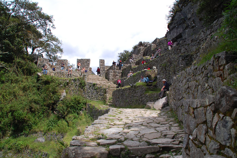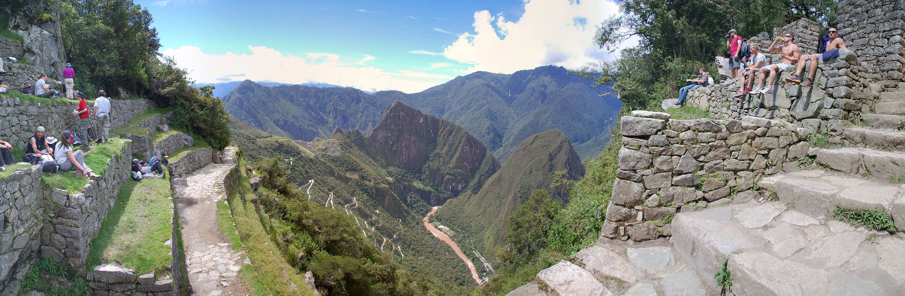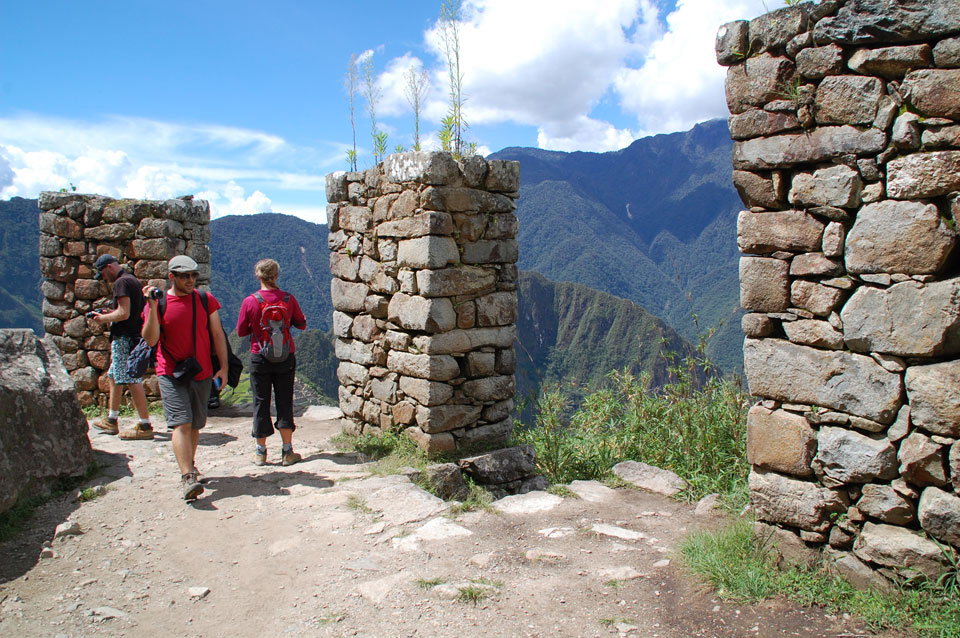 Nach dem Guardhouse gingen wir noch zum Sonnen-Tor. Das war wieder eine Tour von ca. 30‘ one way bergauf mit ein paar leichteren Passagen. Die Aussicht von dort oben war genial. Der original Inka-Trail kommt durch dieses Tor. Allein die Vorstellung, nach 3 Tagen Strapazen von dort oben endlich Machu Picchu zu sehen, ist einfach fantastisch. Ich schaute und starrte mir diesen Ausblick in’s Hirn – besser geht’s kaum.