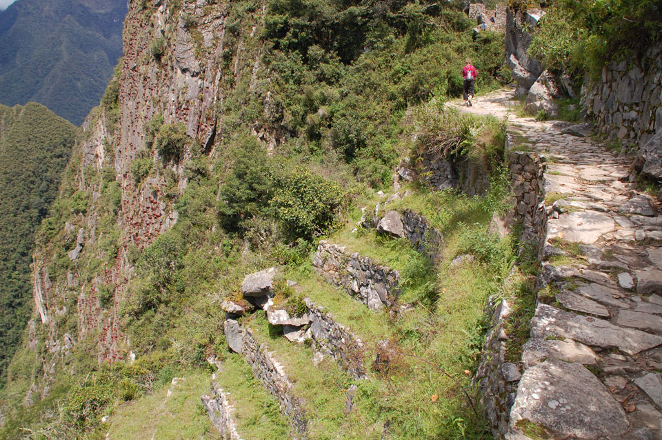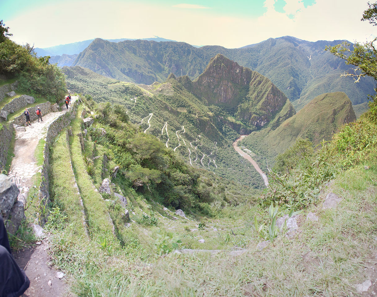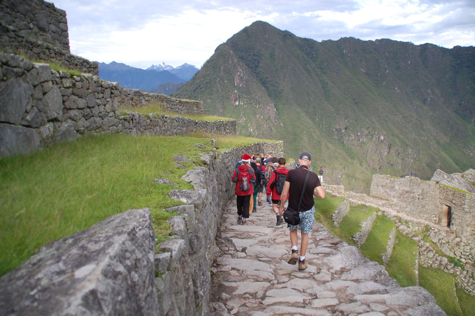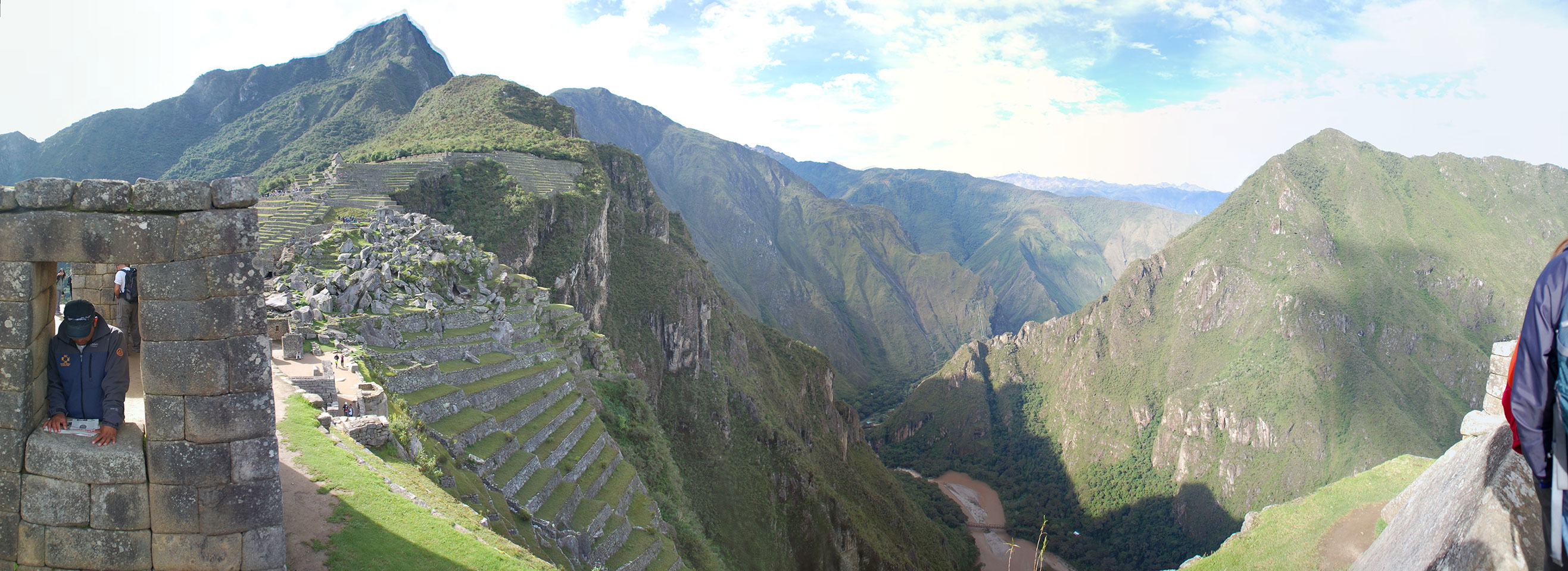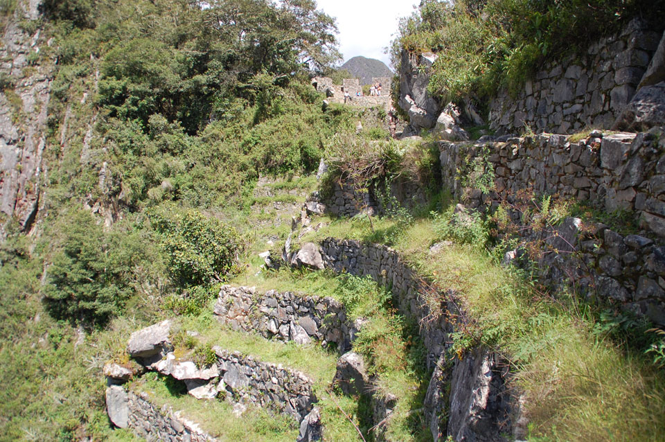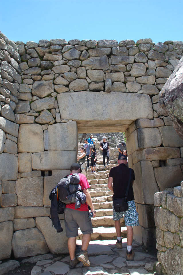 Nach dem Guardhouse gingen wir noch zum Sonnen-Tor. Das war wieder eine Tour von ca. 30‘ one way bergauf mit ein paar leichteren Passagen. Die Aussicht von dort oben war genial. Der original Inka-Trail kommt durch dieses Tor. Allein die Vorstellung, nach 3 Tagen Strapazen von dort oben endlich Machu Picchu zu sehen, ist einfach fantastisch. Ich schaute und starrte mir diesen Ausblick in’s Hirn – besser geht’s kaum.