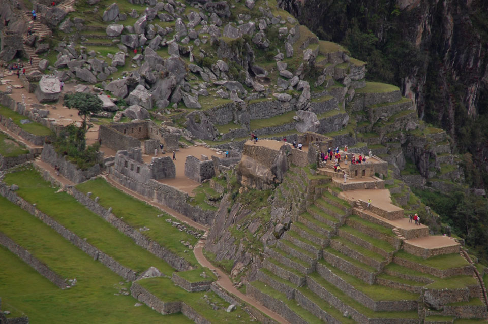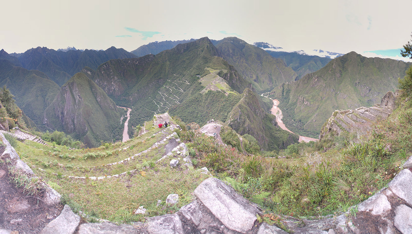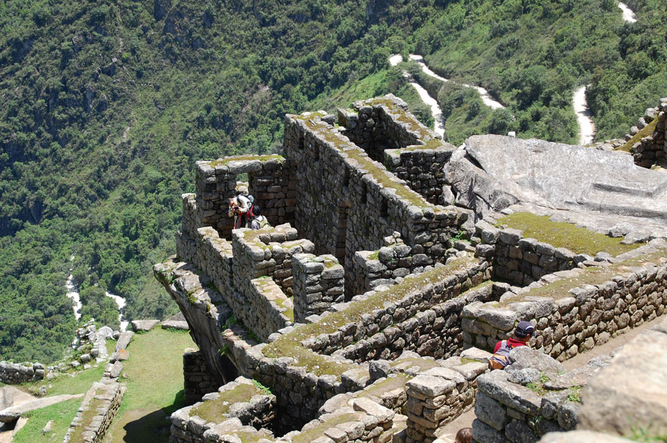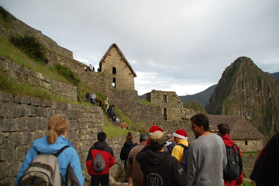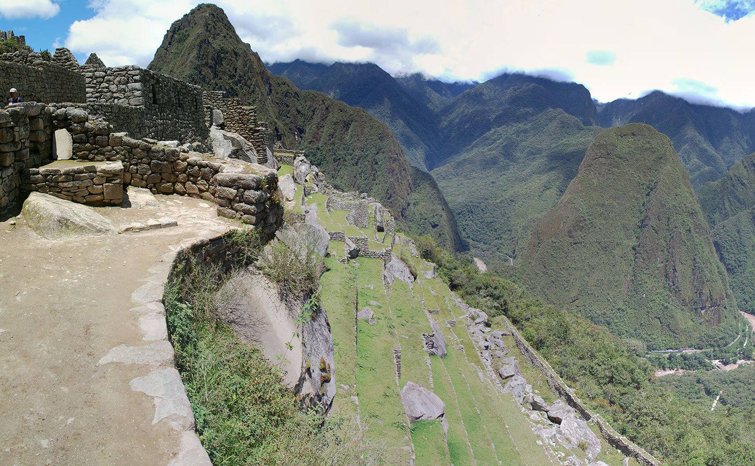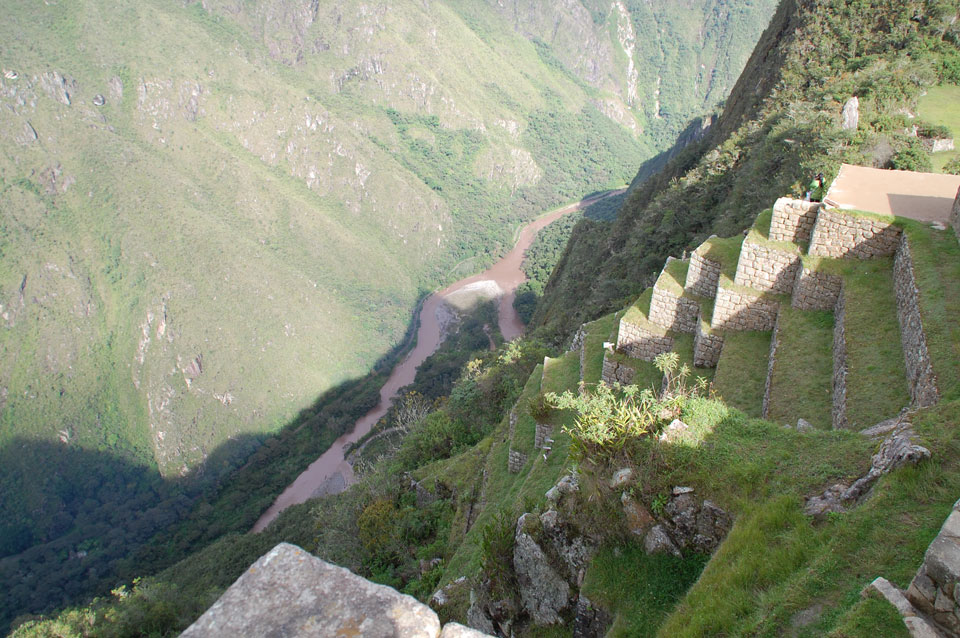 Nach dem Guardhouse gingen wir noch zum Sonnen-Tor. Das war wieder eine Tour von ca. 30‘ one way bergauf mit ein paar leichteren Passagen. Die Aussicht von dort oben war genial. Der original Inka-Trail kommt durch dieses Tor. Allein die Vorstellung, nach 3 Tagen Strapazen von dort oben endlich Machu Picchu zu sehen, ist einfach fantastisch. Ich schaute und starrte mir diesen Ausblick in’s Hirn – besser geht’s kaum.