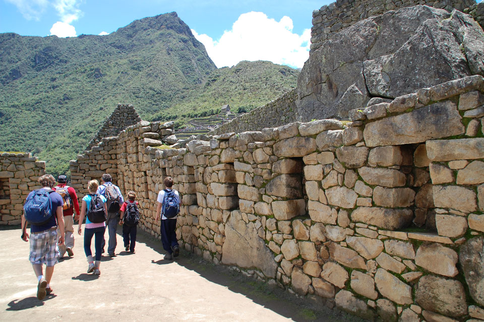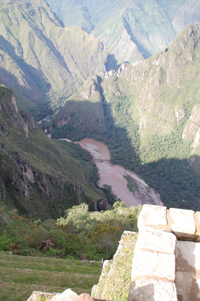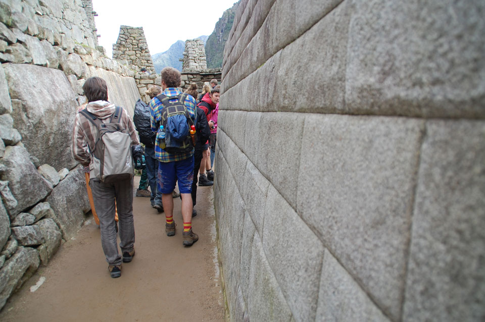 Ich hatte erst mal genug aber wir machten weiter, bin ja nicht jeden Tag hier. Wir schauten alle möglichen Sachen an, gingen zur Inka Brücke. Dort wollte man ’nen Tip, ich kaufte ein Wasser für überteuerte 10 PEN. Das war aber besser, alles klitschenass durch Sonne und permanentes Treppensteigen. Für mich ist es irre, diese ganzen Wege mit diesen schweren Steinen zu bauen .. und so viele Treppen.