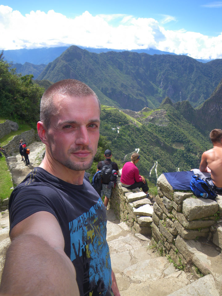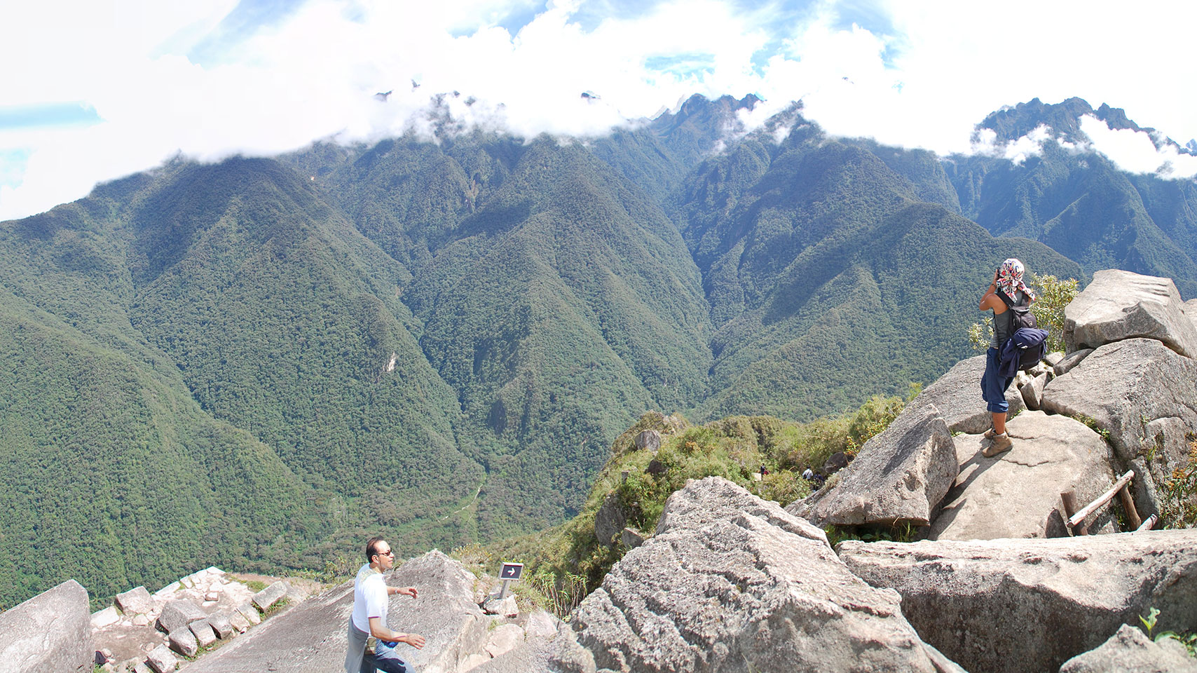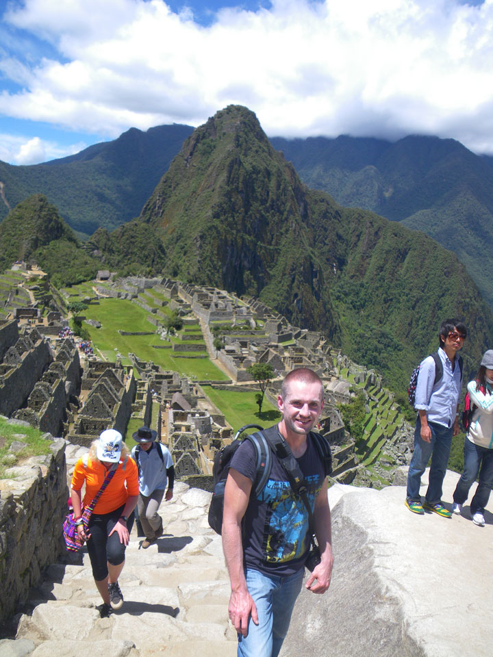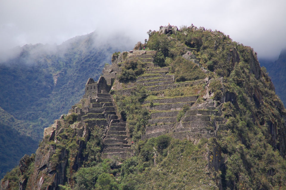 Ich hatte das Ticket für Huayna Picchu – erst um 10. Die Canadier fragten, ob wir schon früher drauf könnten und das war kein Problem. Der Aufstieg dort war extrem: hohe Stufen, schwitzen. Die Aussicht entlohnte für die Strapazen – so hoch oben und eine andere Sicht auf die Stadt über den Wolken.