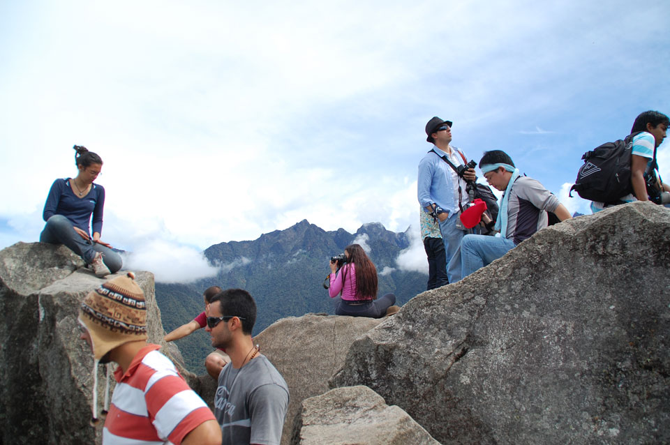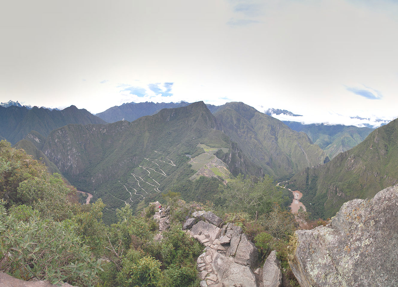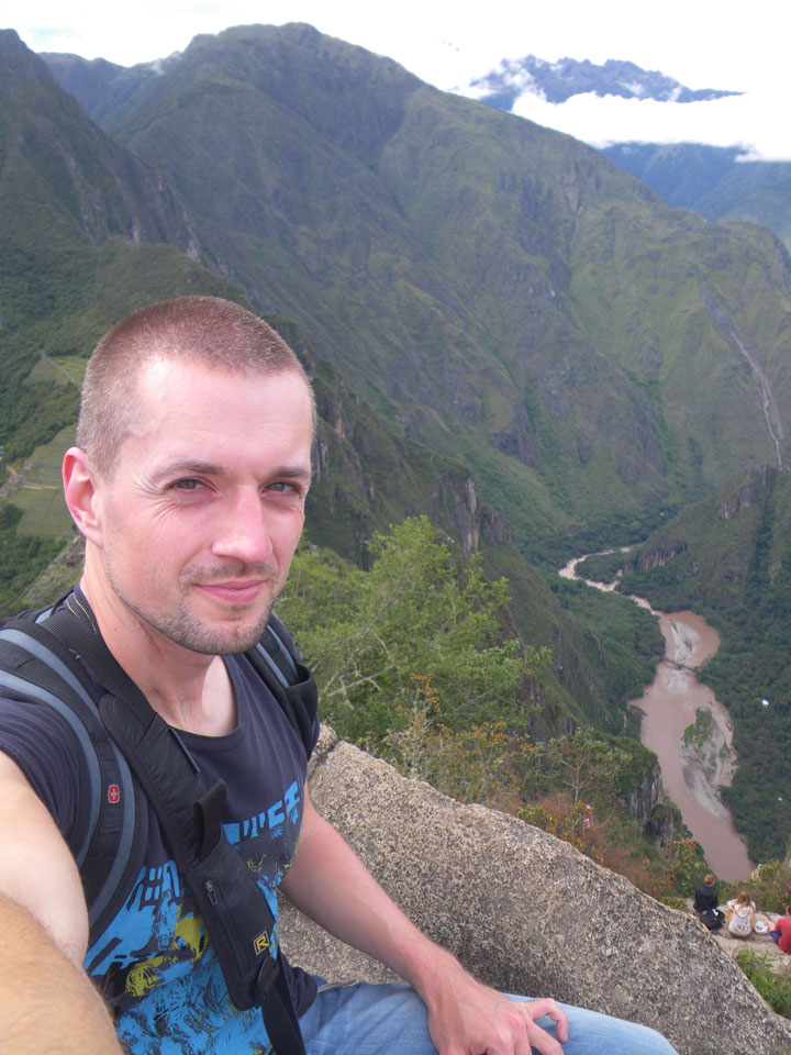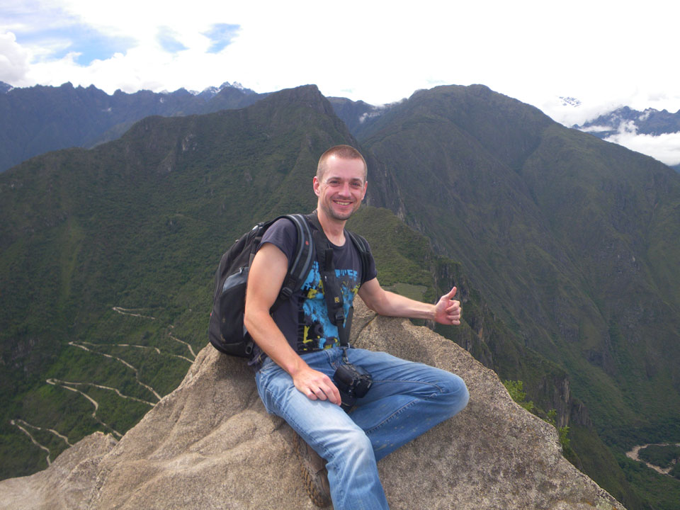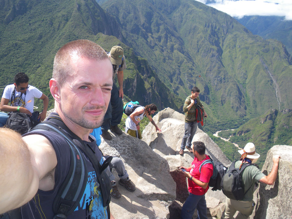 Ich hatte das Ticket für Huayna Picchu – erst um 10. Die Canadier fragten, ob wir schon früher drauf könnten und das war kein Problem. Der Aufstieg dort war extrem: hohe Stufen, schwitzen. Die Aussicht entlohnte für die Strapazen – so hoch oben und eine andere Sicht auf die Stadt über den Wolken.