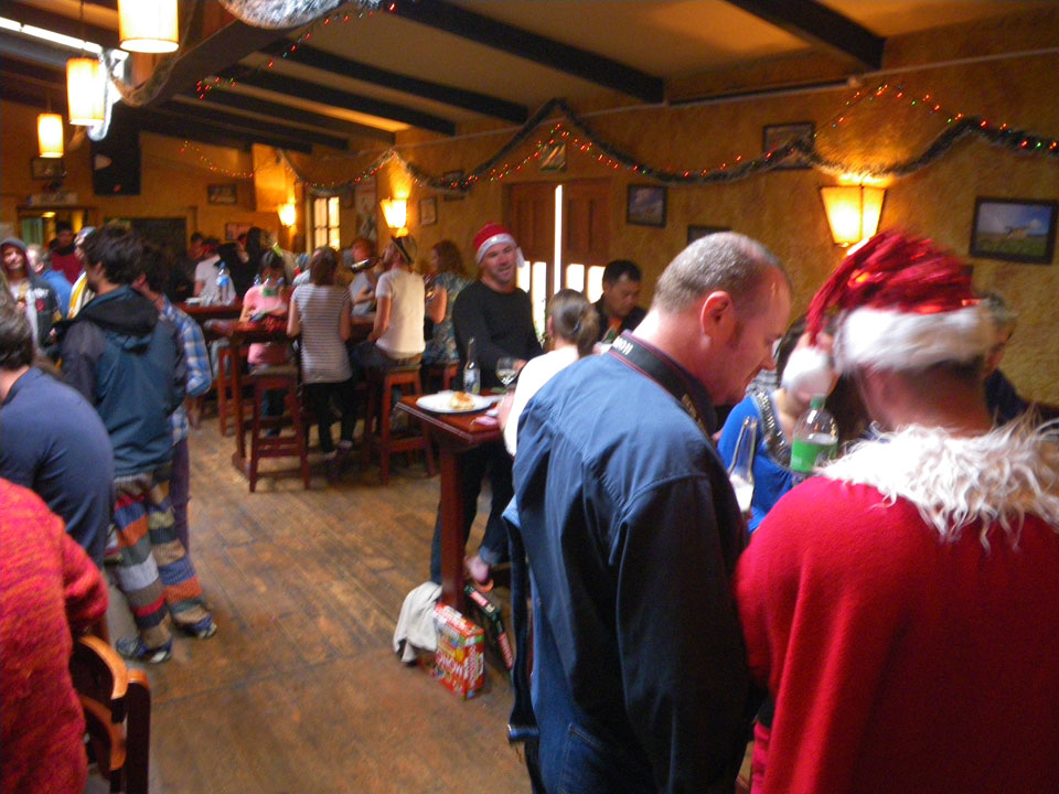 Was für eine Kälte heute! Der einzige halbwegs warme Platz im Hostel war die Bar. Das normale Frühstück gab’s heute nicht – nur ein Schicken-Käse Croissant, weil die Küche das Weihnachtsessen vorbereitet.