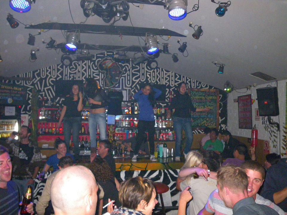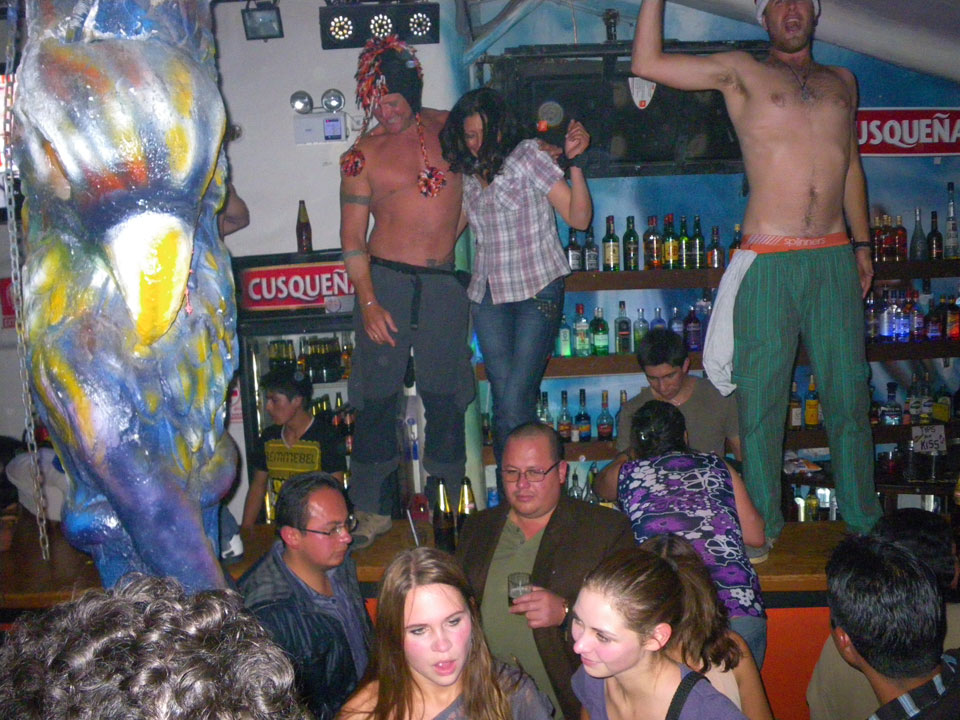 Die beiden Haupt-Discos scheinen „Mama Africa“ und „Mythology“ zu sein. Ich bekam ’nen Trink-Voucher und tingelte zwischen beiden. Viele Touristen und Tanz. Bei jemandem war wieder mal irgendein Dieb dabei. Die Kamera von ’nem Mädel mit 500 Bildern aus Peru wurde geklaut – aus der geschlossenen Handtasche. Mich macht dieser Mist echt verrückt, meine Stimmung war dahin und es flossen bei ihr sogar Tränen. Peru ist auf der einen Seite super – auf der anderen Seite trüben die offensichtlich permantent präsenten Diebe die Stimmung. Den Amerikanern wurde in Lima ’ne DSLR aus dem Schoß im Taxi geklaut – durch’s Fenster!