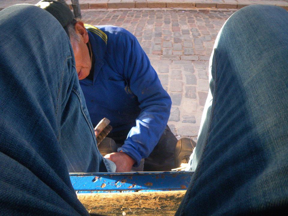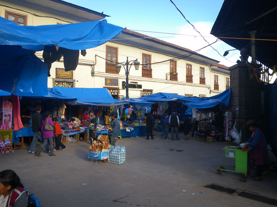 Ich lief etwas herum, sah einen Markt, kehrte bei ’nem Friseur ein. Für 5 Soles (€1,40 + 2 Tip) waren die Haare wieder kurz genug, wenn auch nicht überall in der gleichen Länge. Wieder zurück ließ ich mir die Schuhe putzen, was sich auch lohnte. Die CAT sahen so wieder wie neu aus – das kostet nur 1 Sol, gab 2.