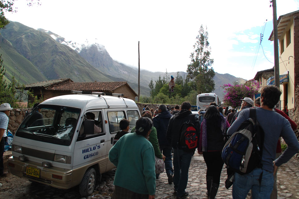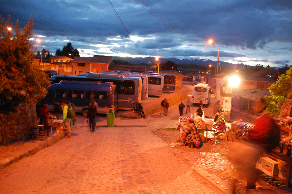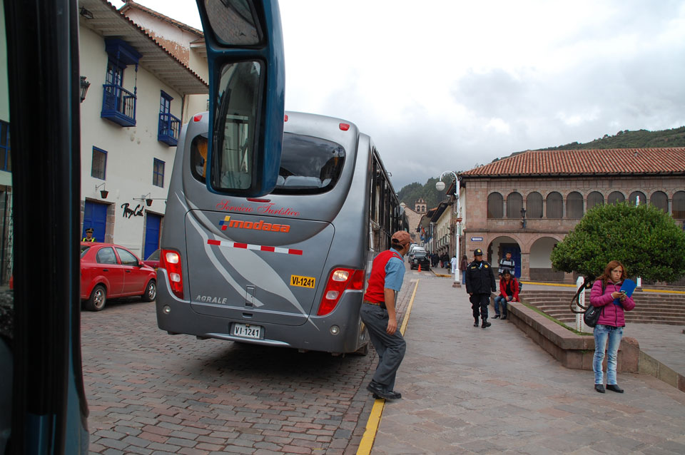 Eine Menge Tourbuse hatten die Touristen schon geladen. Unser Bus drehte ein paar Runden und nahm uns dann auch nach 9 noch mit. Auf in’s heilige Tal der Inkas!
