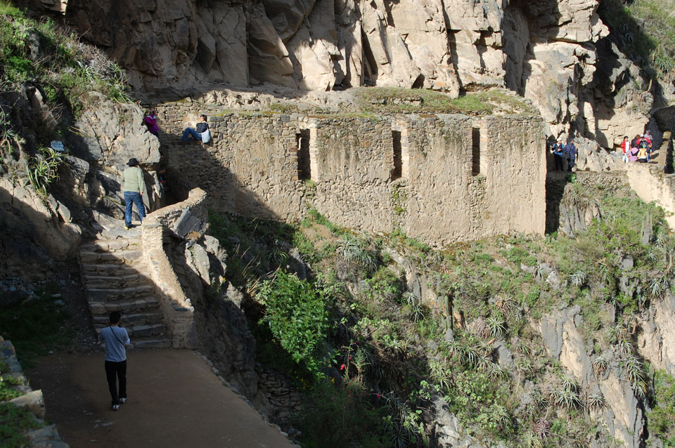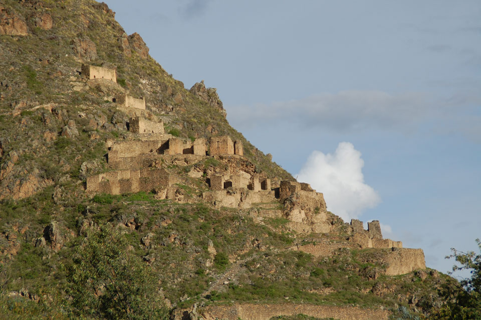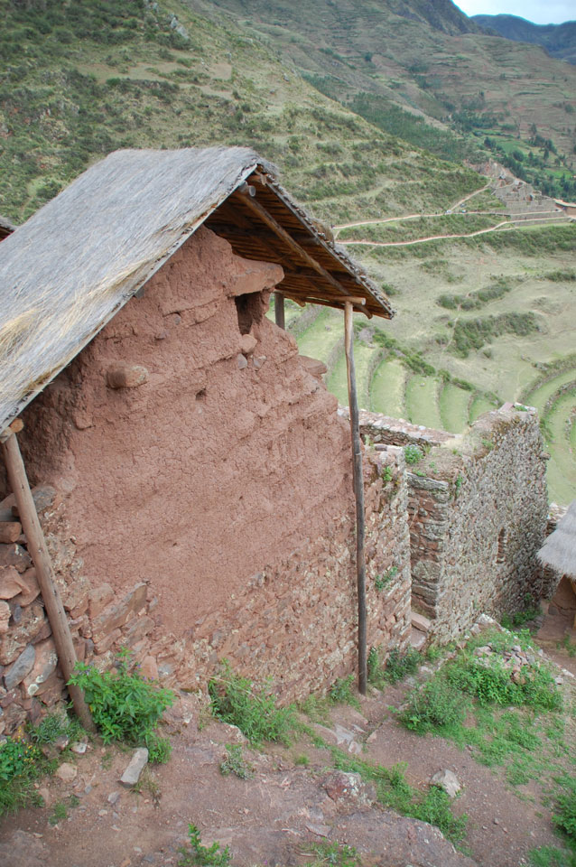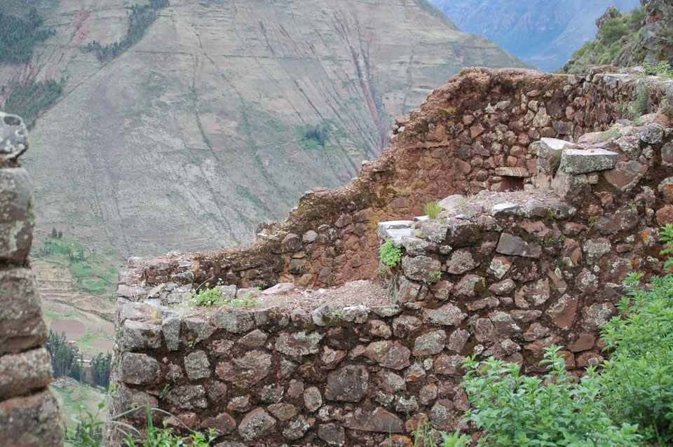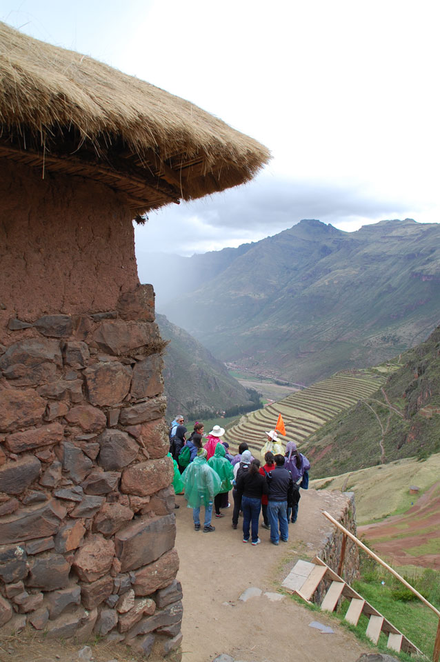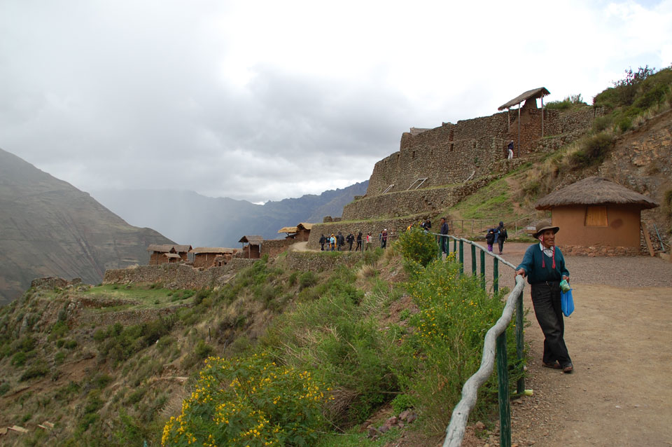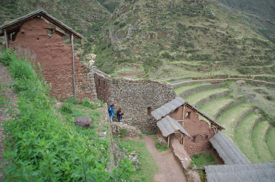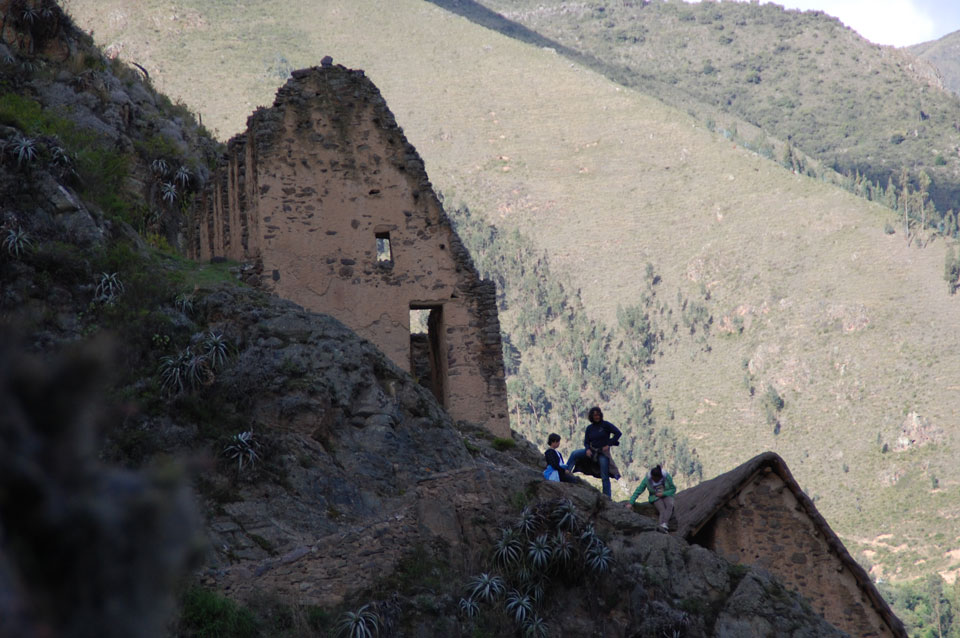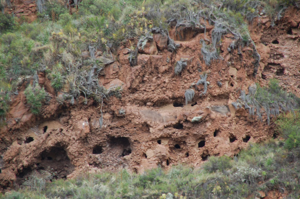 Jetzt auf der Route mussten alle ihr Touristenticket kaufen – 70 PEN für Ausländer und 40 für Locals. In luftigen Höhen stehen wieder alte Häuser und da war auch eine Felswand, wo viele viele Mumien eingegraben wurden. Ein ganzer Berg als Friedhof.