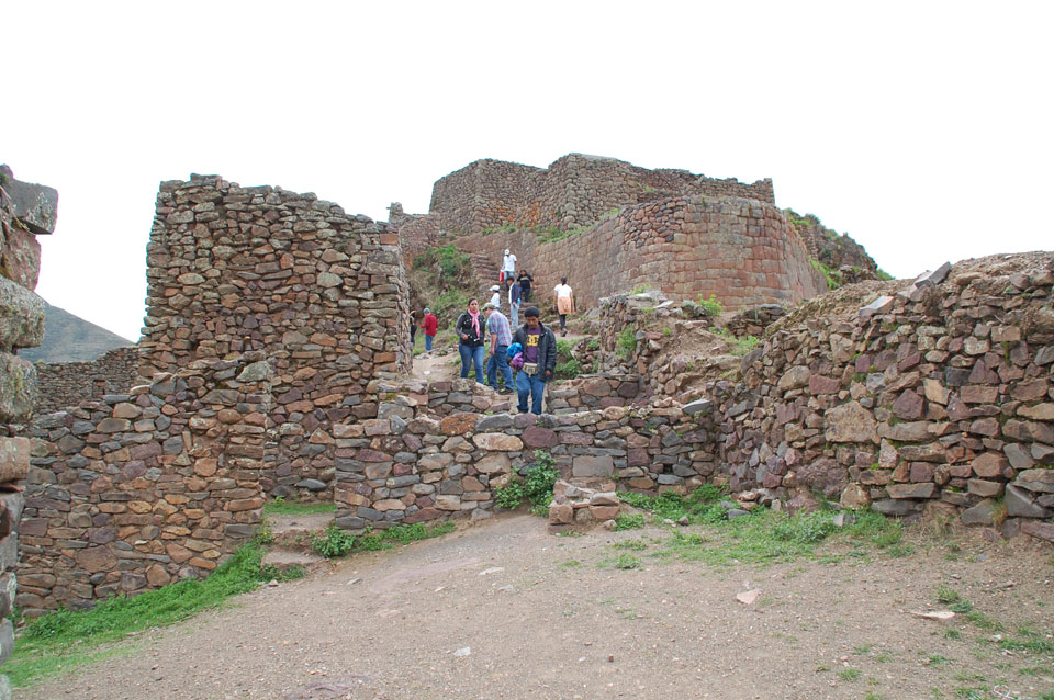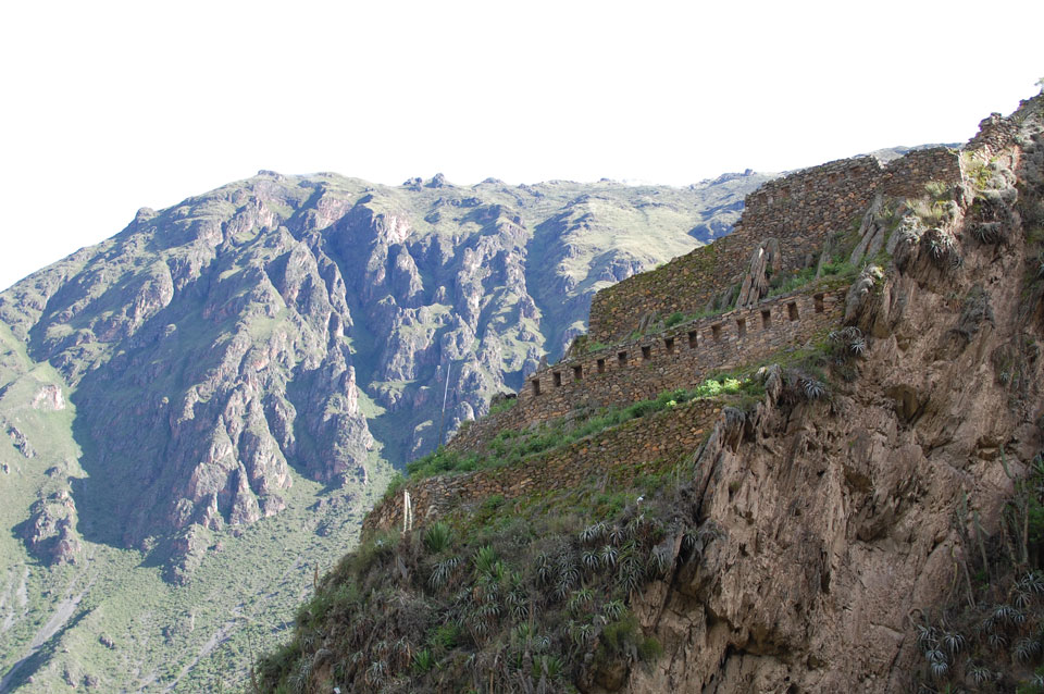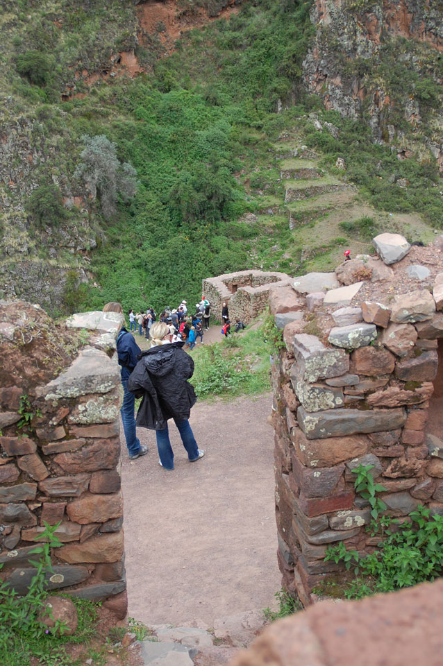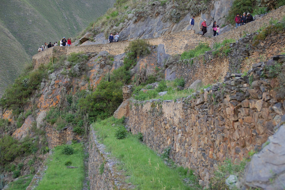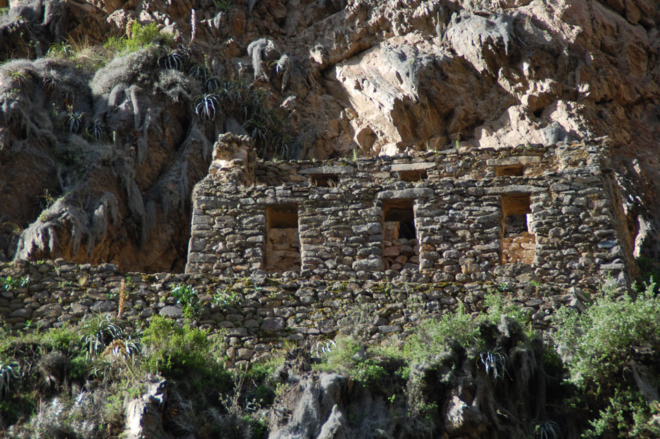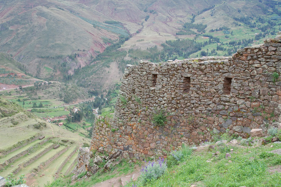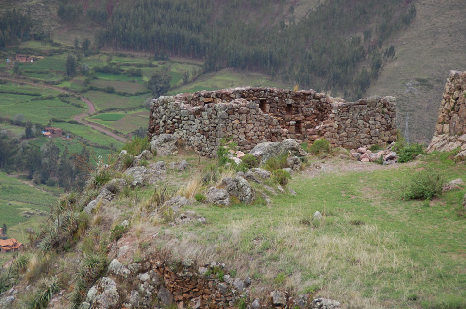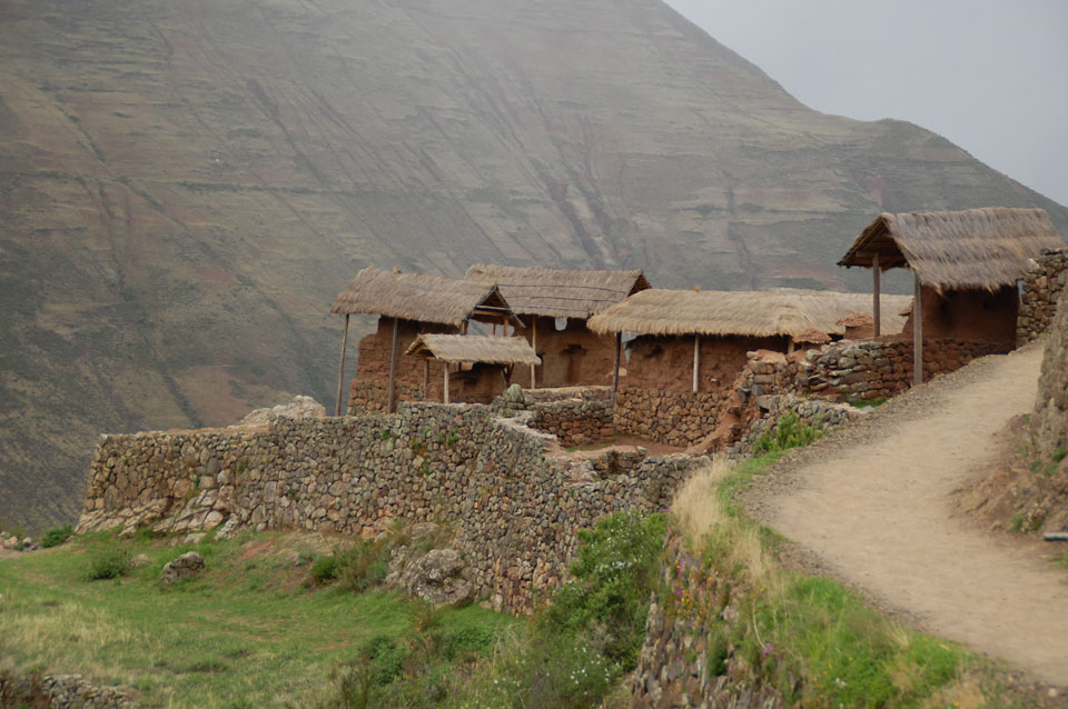 Jetzt auf der Route mussten alle ihr Touristenticket kaufen – 70 PEN für Ausländer und 40 für Locals. In luftigen Höhen stehen wieder alte Häuser und da war auch eine Felswand, wo viele viele Mumien eingegraben wurden. Ein ganzer Berg als Friedhof.