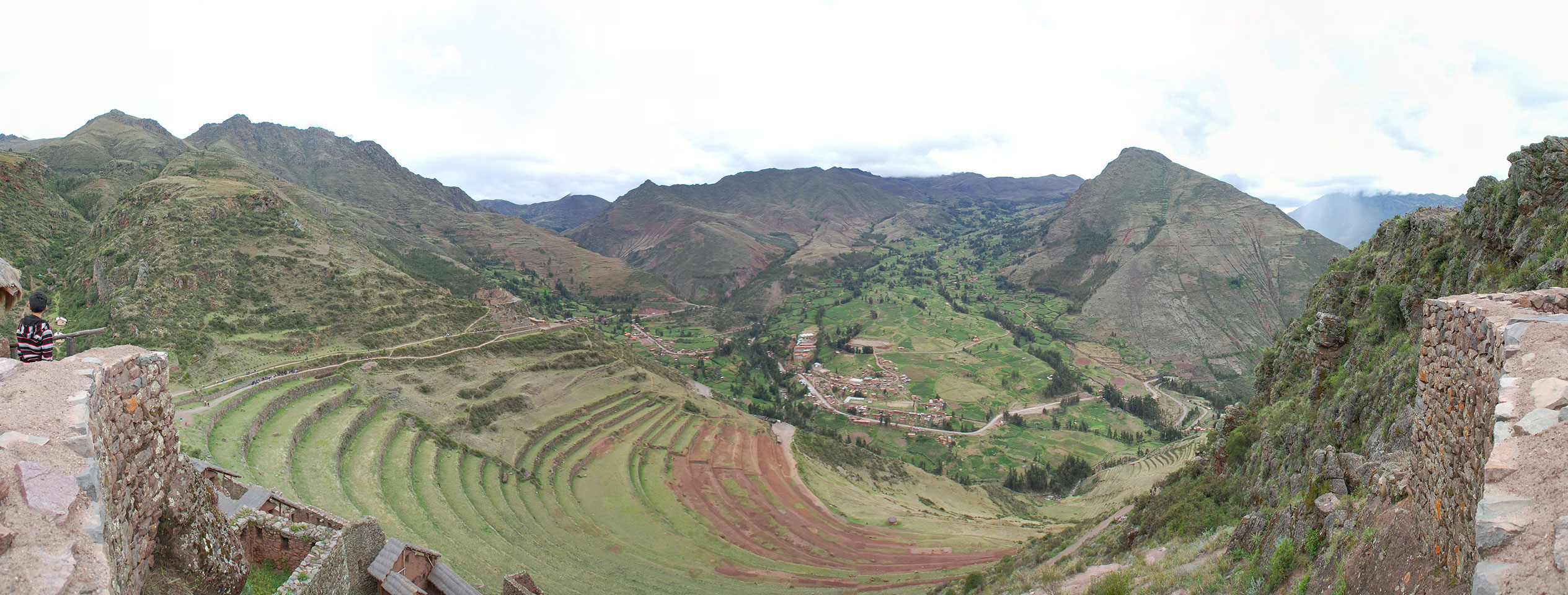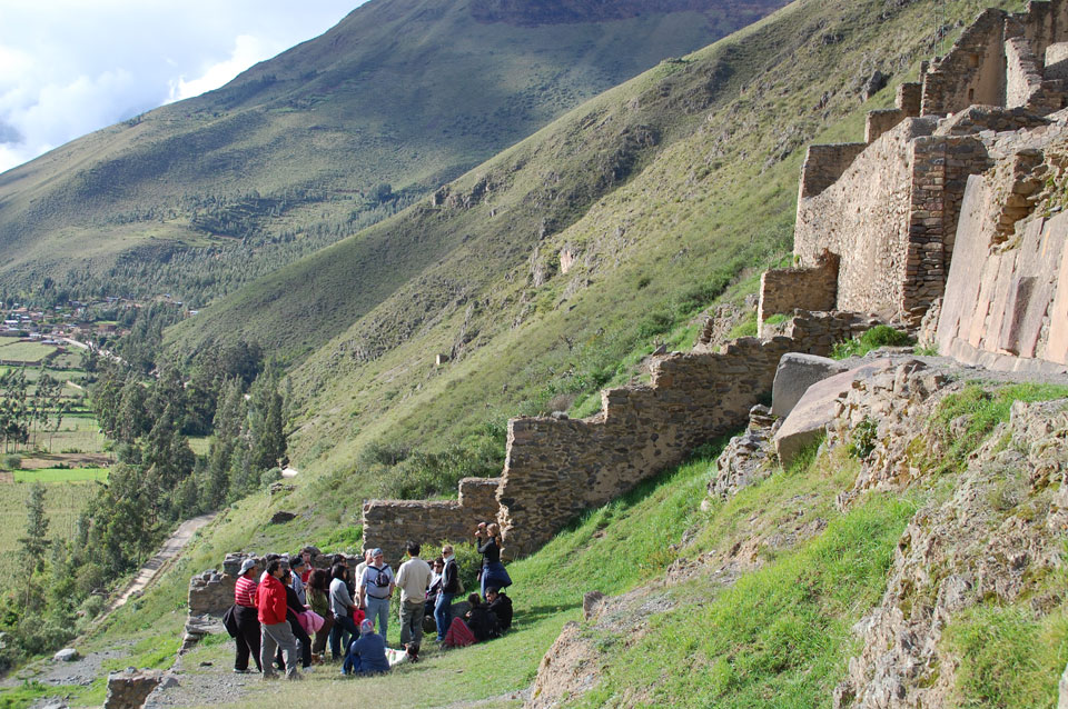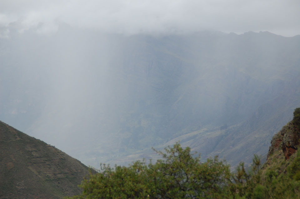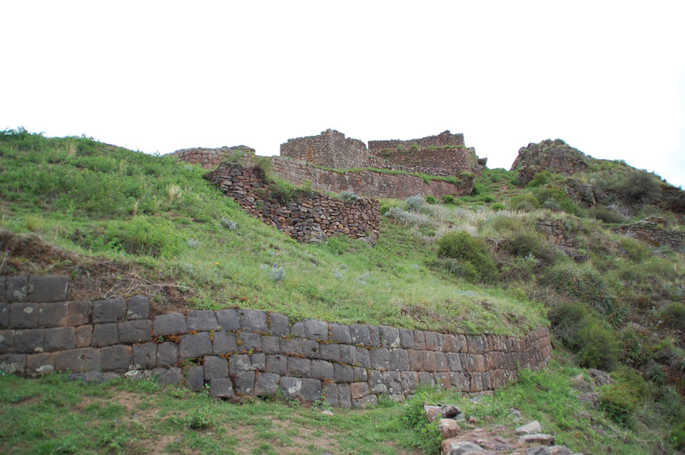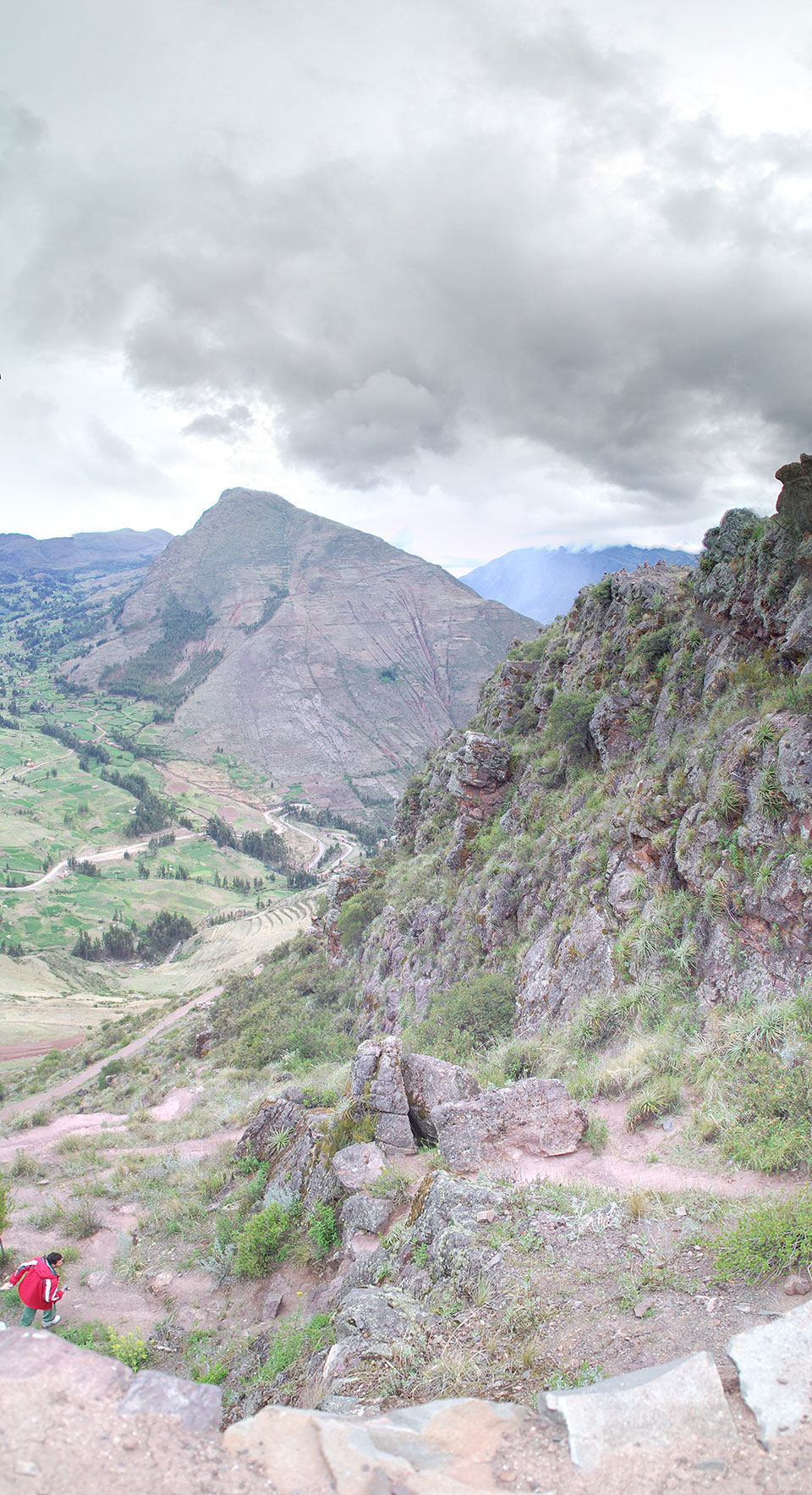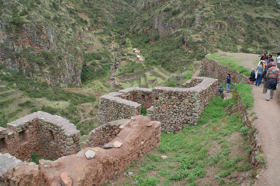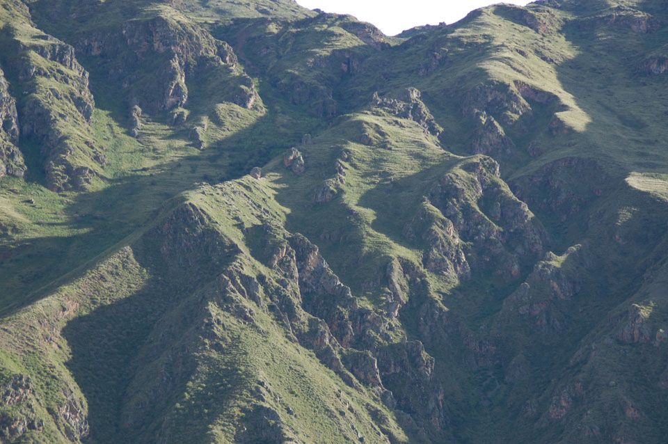 Jetzt auf der Route mussten alle ihr Touristenticket kaufen – 70 PEN für Ausländer und 40 für Locals. In luftigen Höhen stehen wieder alte Häuser und da war auch eine Felswand, wo viele viele Mumien eingegraben wurden. Ein ganzer Berg als Friedhof.