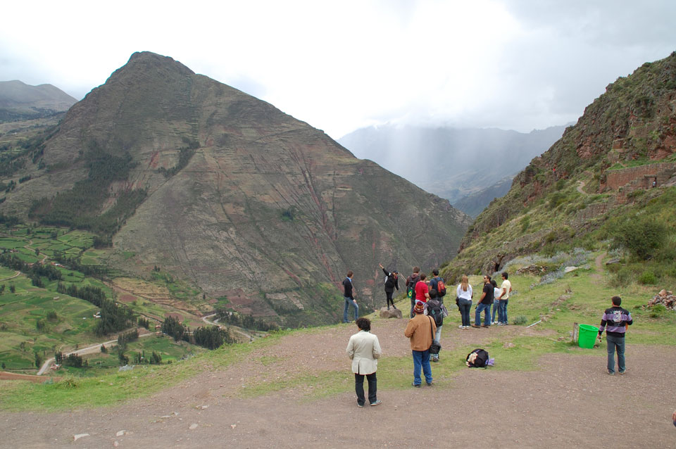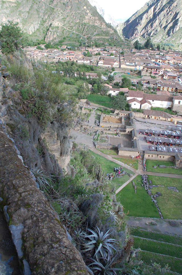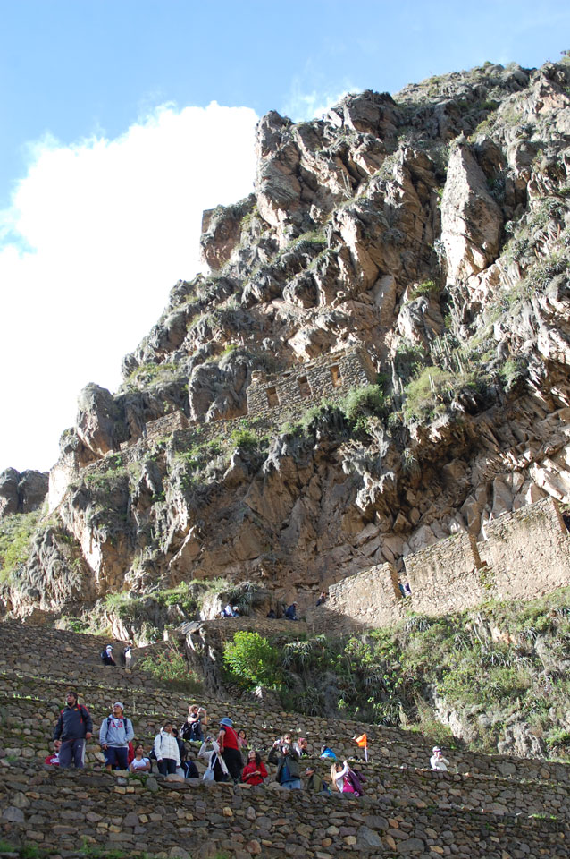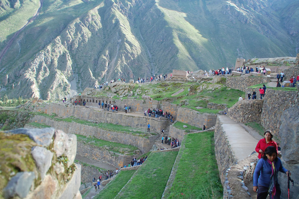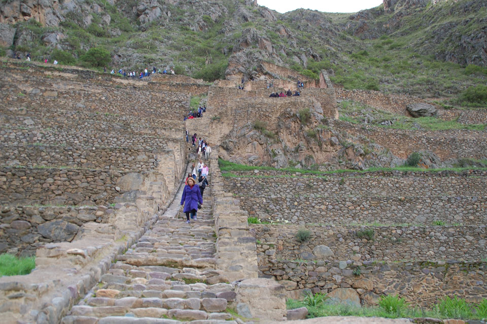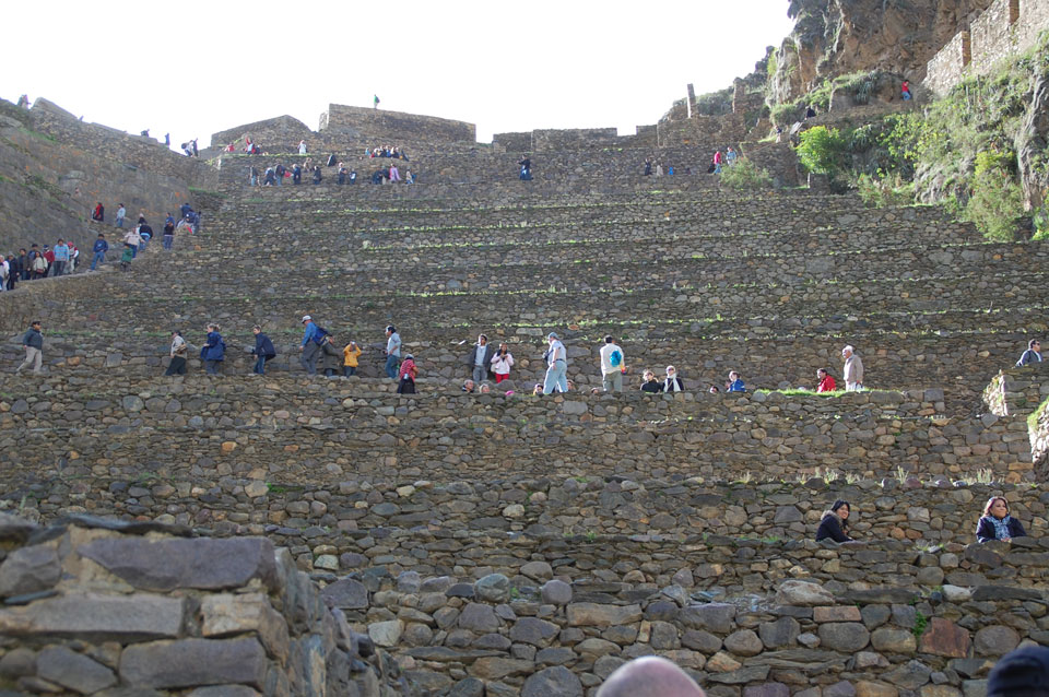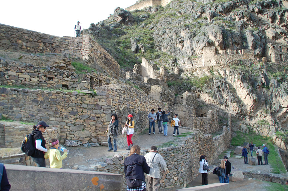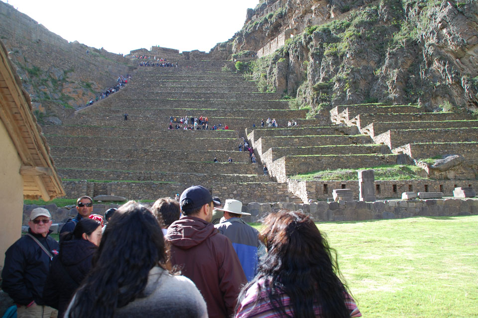 In Ollantaytambo schauten wir wieder impossante Inka Bauten an. Die ganzen Treppen und Steinbewegungen sind respektabel. Große Blöcke wurden 7 km weit gezogen und dann in einer über 1000 Meter langen Rampe schließlich in die Höhe gebracht. Als wir den Bus suchten, war er nicht da. Ich hatte schon den Verdacht, dass wir jetzt per Taxi zurück müssten aber die lange Warteschleife der ganzen Touristenvehikel machte den Bus einfach unsichtbar – alles klappte. Einige Leute verließen die Tour und fuhren mit dem Zug nach Aguas Calientes. Das ist eine recht günstige Möglichkeit, das Sacred Valley zu sehen – nach Ollantaytambo muss man ja ohnehin als Zug-Endhaltestelle.