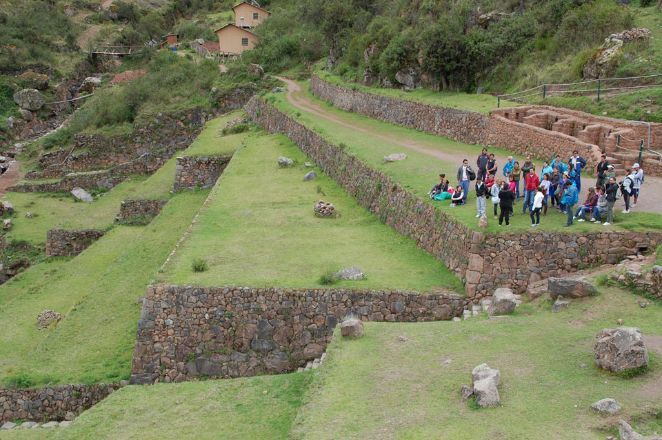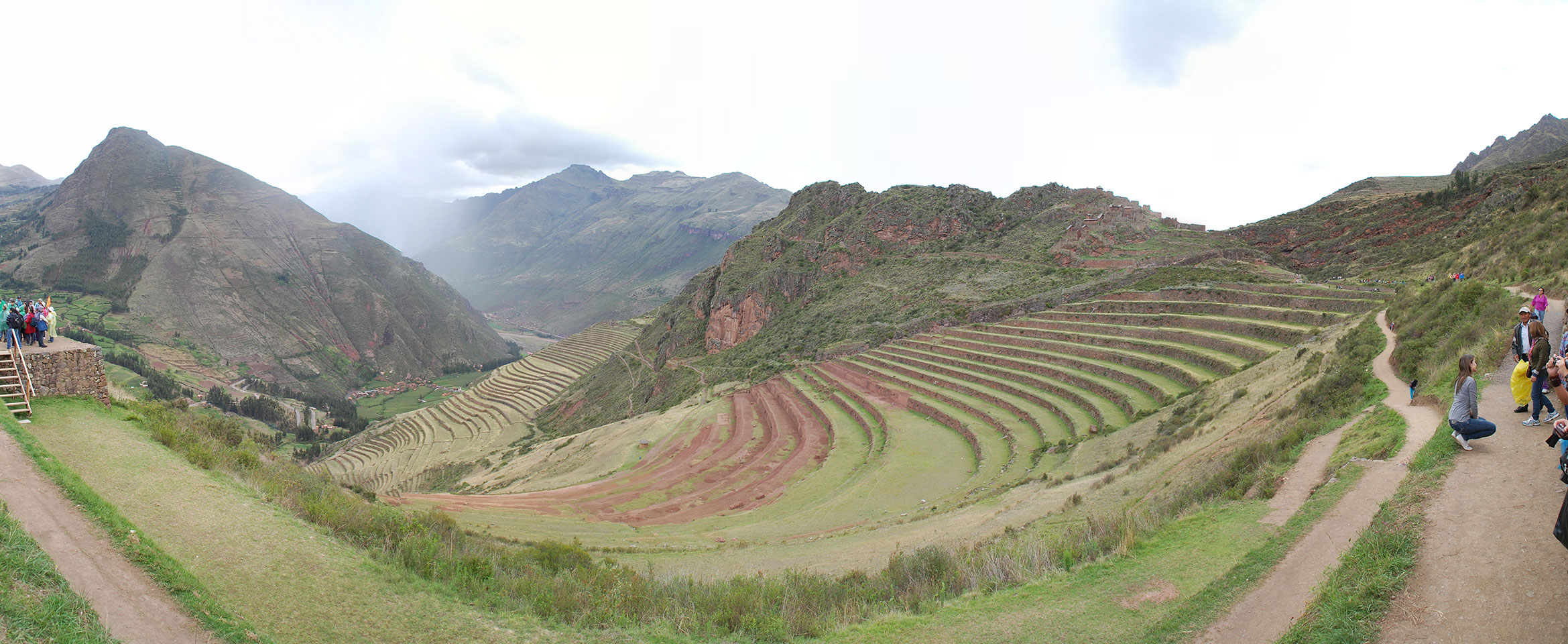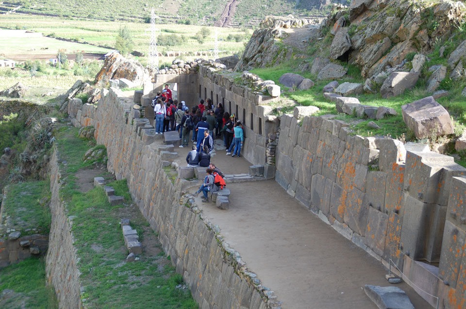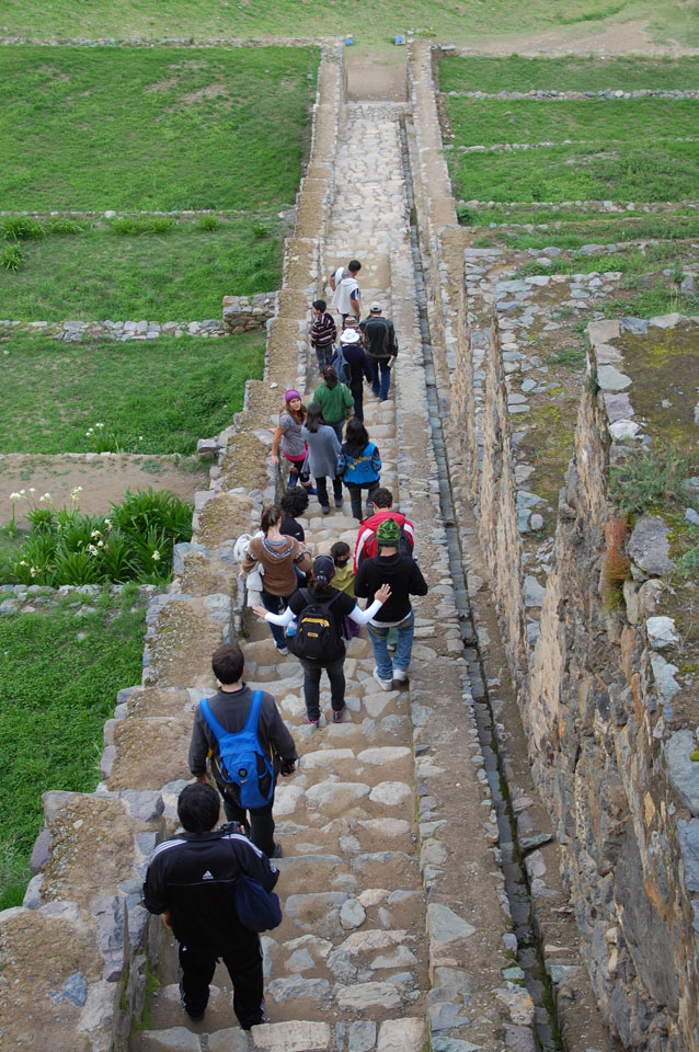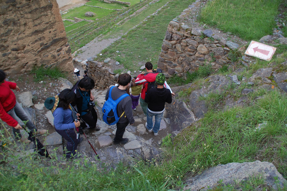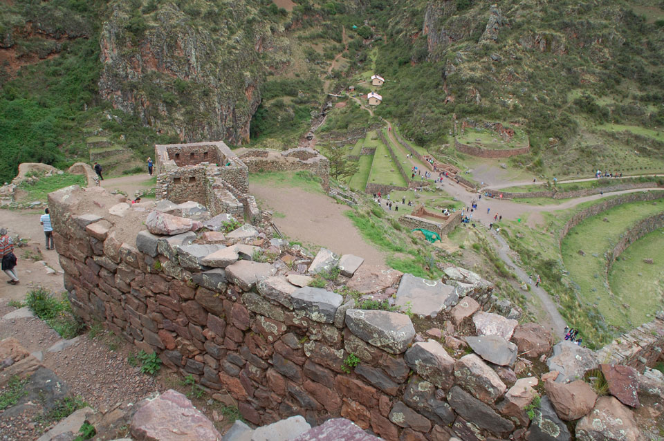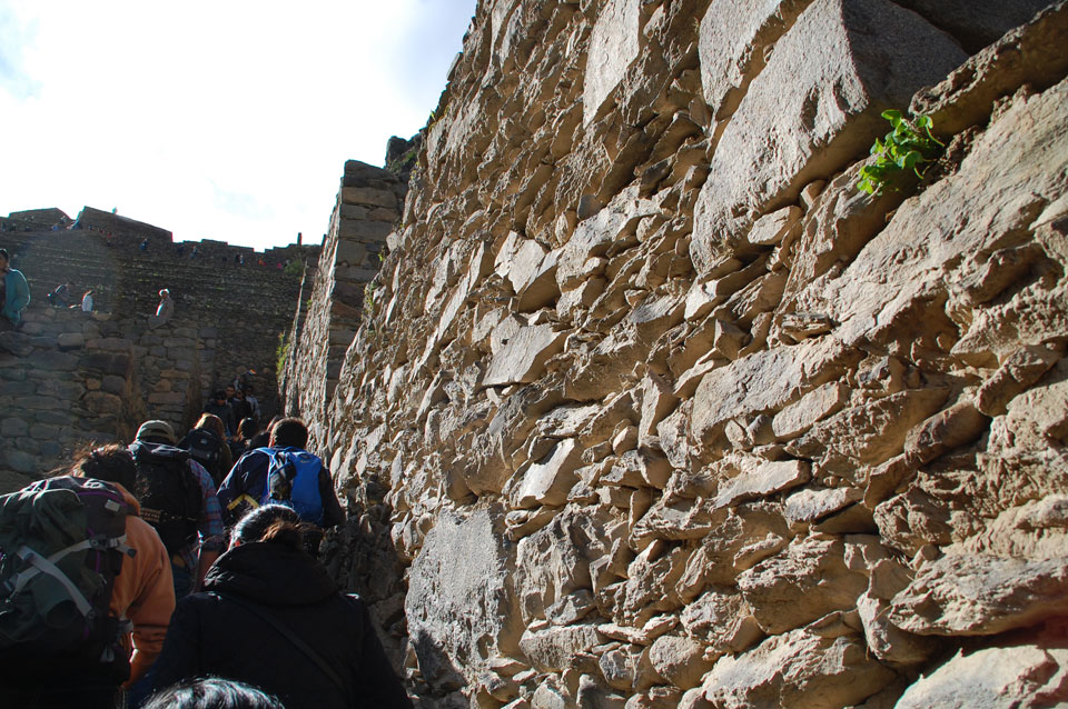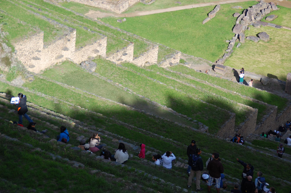 In Ollantaytambo schauten wir wieder impossante Inka Bauten an. Die ganzen Treppen und Steinbewegungen sind respektabel. Große Blöcke wurden 7 km weit gezogen und dann in einer über 1000 Meter langen Rampe schließlich in die Höhe gebracht. Als wir den Bus suchten, war er nicht da. Ich hatte schon den Verdacht, dass wir jetzt per Taxi zurück müssten aber die lange Warteschleife der ganzen Touristenvehikel machte den Bus einfach unsichtbar – alles klappte. Einige Leute verließen die Tour und fuhren mit dem Zug nach Aguas Calientes. Das ist eine recht günstige Möglichkeit, das Sacred Valley zu sehen – nach Ollantaytambo muss man ja ohnehin als Zug-Endhaltestelle.