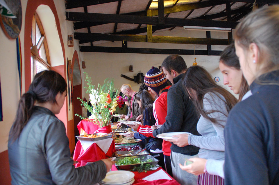 In Urubamba gab’s Mittagessen. Beim Kauf der Tickets gestern, wollte der Verköufer nicht mit dem Preis runtergehen, weil wir das Buffet mit incl. hatten. Jetzt am Buffet wollte man davon nichts wissen. Pro Nase wären 20 PEN fällig. Das ließ man sich nicht gefallen. Es wurde diskutiert, das Reisebüro angerufen und herumgestritten. Jemand rief sogar die Polizei an. Ich hatte aber Hunger und die Zeit war knapp – zahle 20 PEN für zwei Personen und bekam eine Quittung, damit man sich diese vielleicht wiederholt.