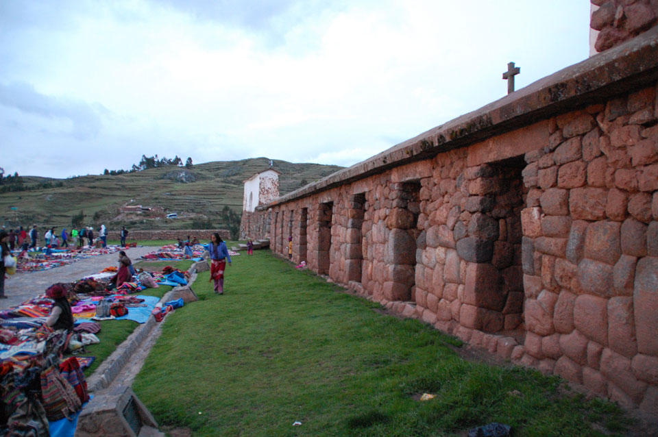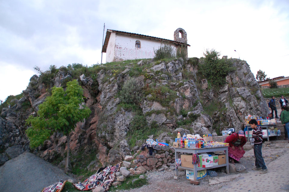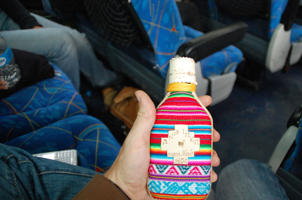 Ein fliegender Händler stieg wieder zu, gab eine Kostprobe seines Anis-Schnapps. Für 15 PEN mit schöner bestrickter Flasche war die Entscheidung leicht. Mit Inca Kola schmeckte das aber nicht so dolle. Der letzte Stopp wurde auch noch erreicht – eine Kirche, die über Inka-Bauten errichtet wurde.