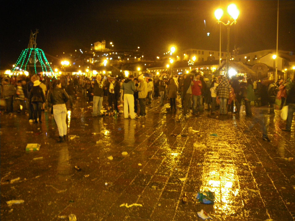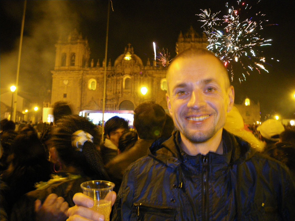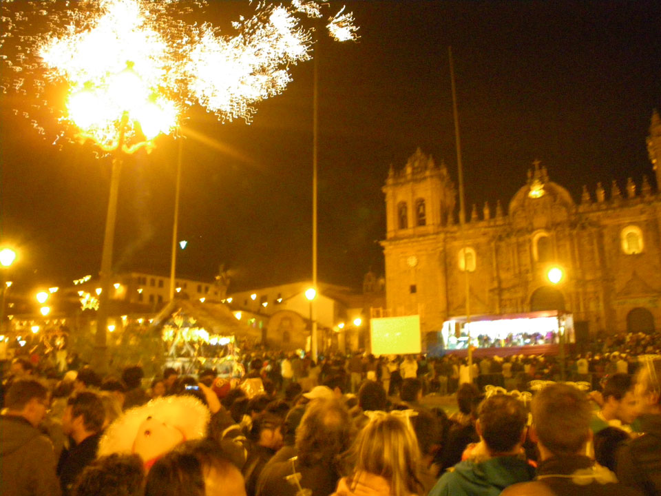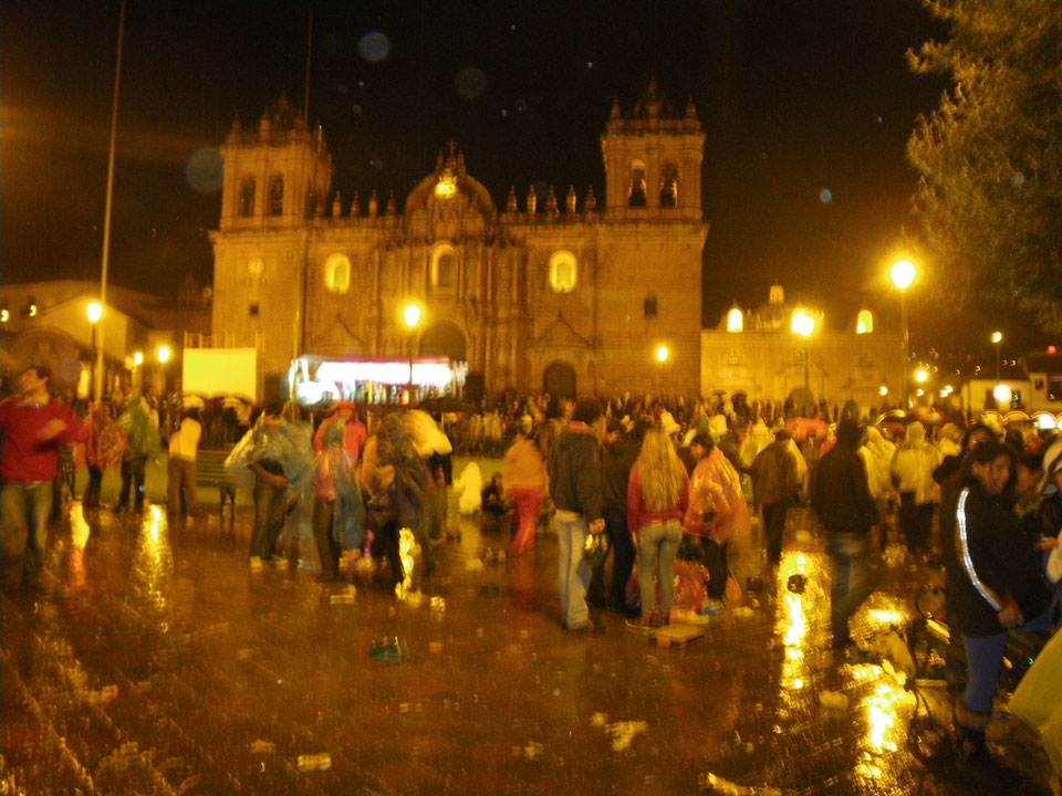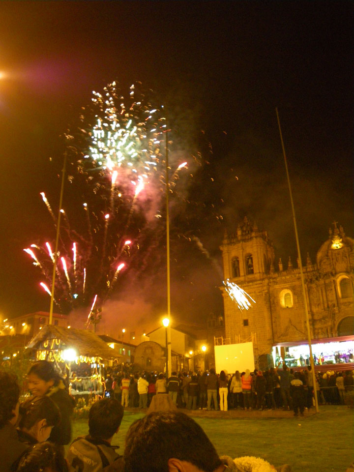 Im Hostel legte ich mich kurz hin. Die Neujahrsfeier in der Bar war mega irre! Die Leute waren ausgelassen sangen lauthals alle Songs mit – selten sowas gesehen. Ich musste aber los, Neujahr auf dem Plaza las Armas war ein Muss. Ein Taxi war später schwer zu bekommen, eine Flasche Sekt gab’s aber auf dem Weg. 23:45 waren wir in Position und dann gab’s Feuerwerk, Anstoßen und einen guten Start in 2012.