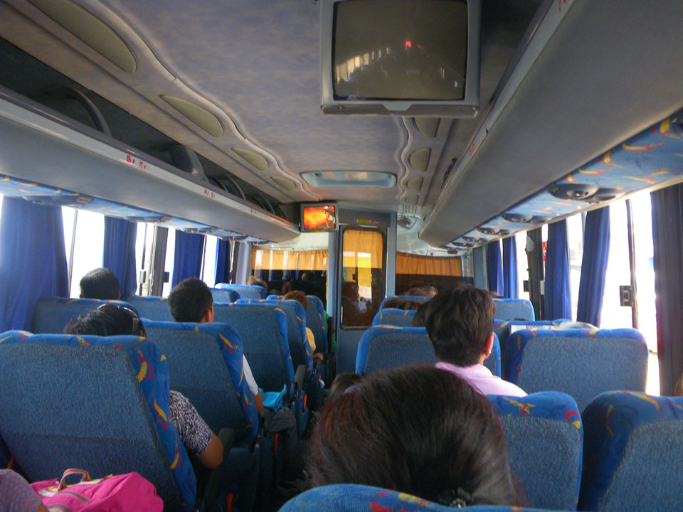 Zeitig wollten wir los aber bei meinem Magen brauchte ich länger. Ich hatte noch Tabletten aus Brasilien und hoffte auf eine gute Busfahrt. Der Bus kam auch sofort, man spring einfach bei Flores oder Sojuz auf, die alle 10-15′ vorbeisausen.