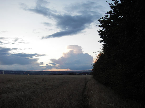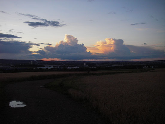 Mit der Kamera rannte ich draussen herum, photographierte die Wolken. Von Rabenstein wehte es die Musik vom Splash. Die hatten dieses Wochenende nicht gerade Glücl mit dem Wetter. Es war kalt und regnete einige Male. Mit dem Zelt ist das alles noch was anderes.