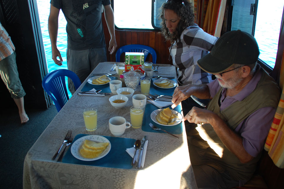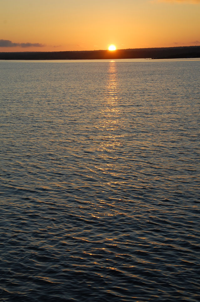 Ich wachte 10 vor 6 vor’m Sonnenaufgang auf. Es war recht frisch aber ich hatte schön auf dem Oberdeck geschlafen. So brachte ich meine Sachen wieder in die Kajüte, während auch die anderen geweckt wurden.