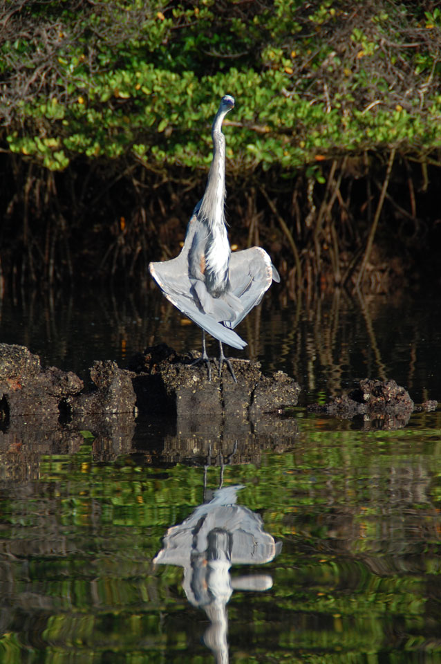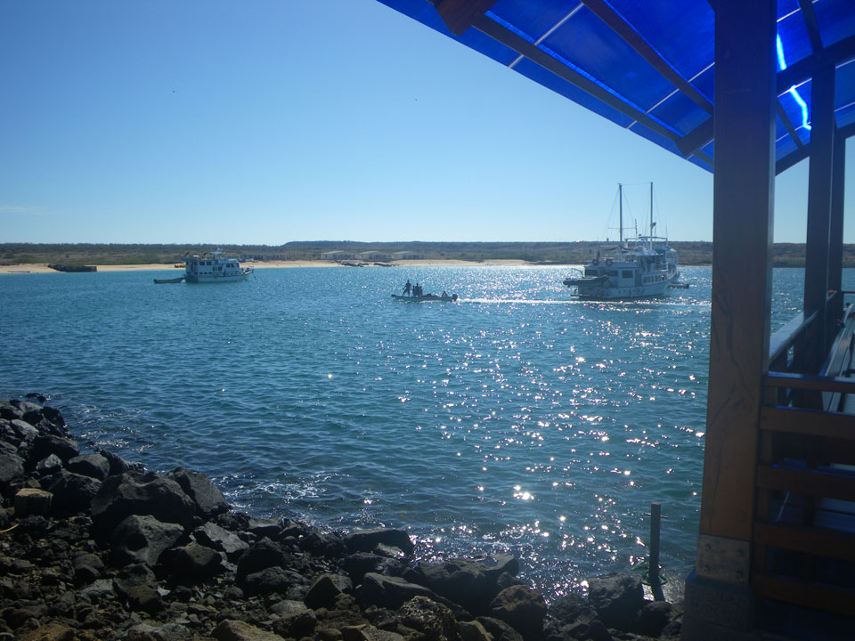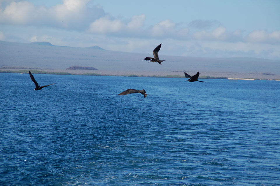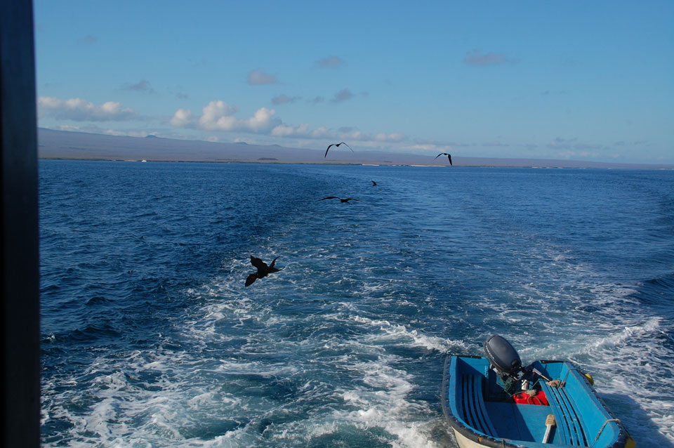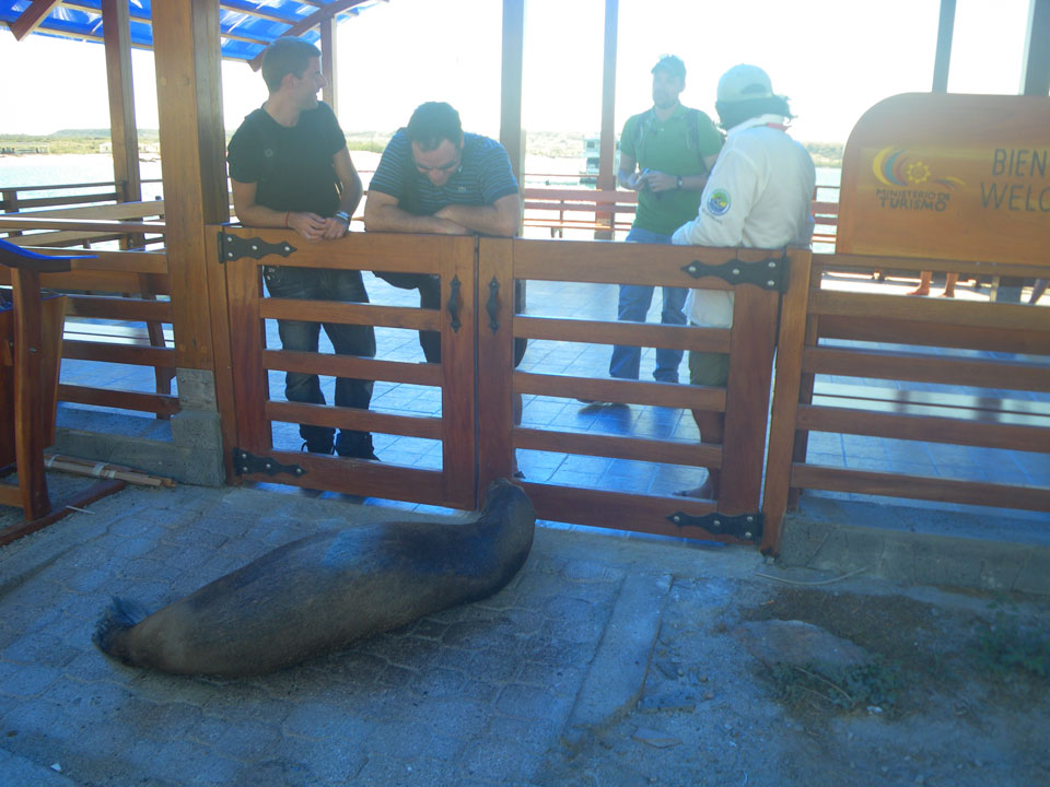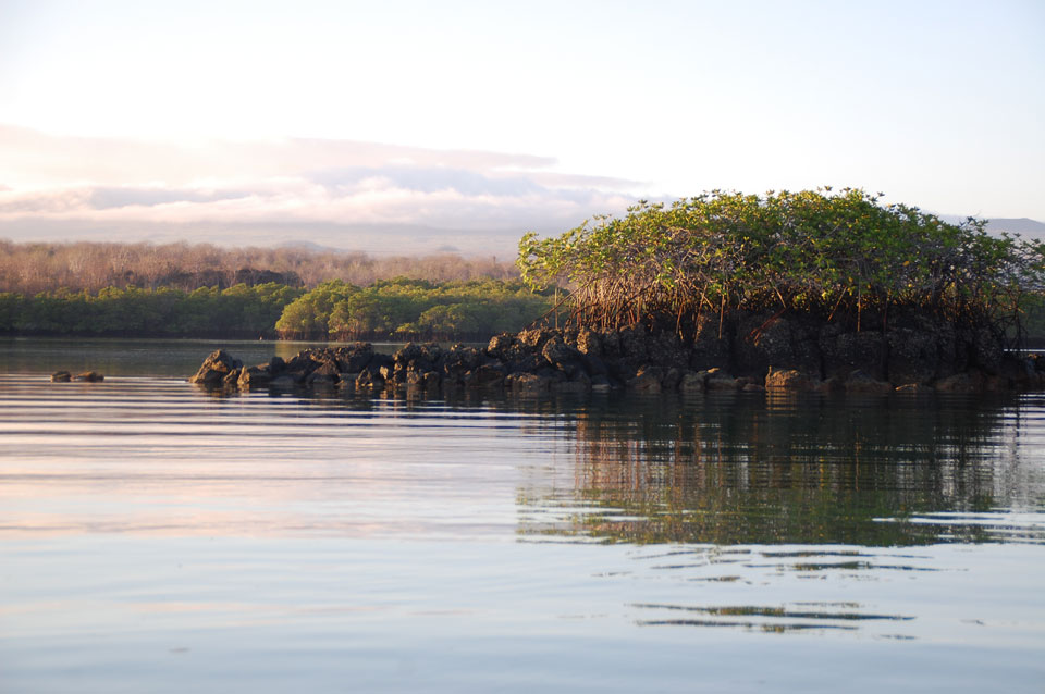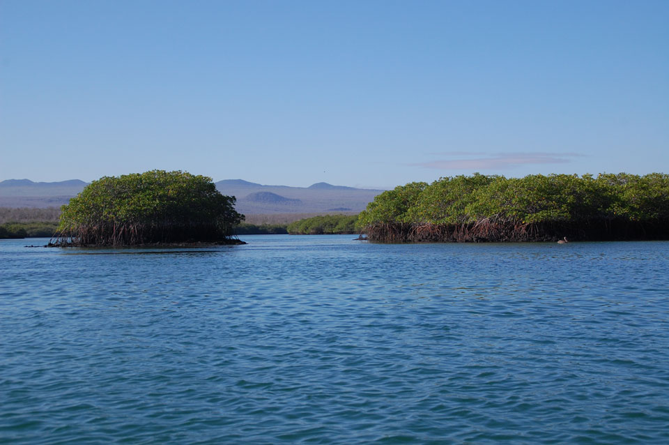Wir hatten nur ein paar Kekse vor’m Frühstück, denn schon ganz zeitig sollte die Tour durch die Magroven starten. In Baltra nutzen viele Schildkröten das stille Wasser zur Paarung. Wir sahen einige Action dort – so viele Schildkröten um uns herum, die ab und zu mal auftauchten und hörbar nach Luft schnappten. Baby-Haie schwammen auch herum und Vögel gab’s natürlich auch wieder.