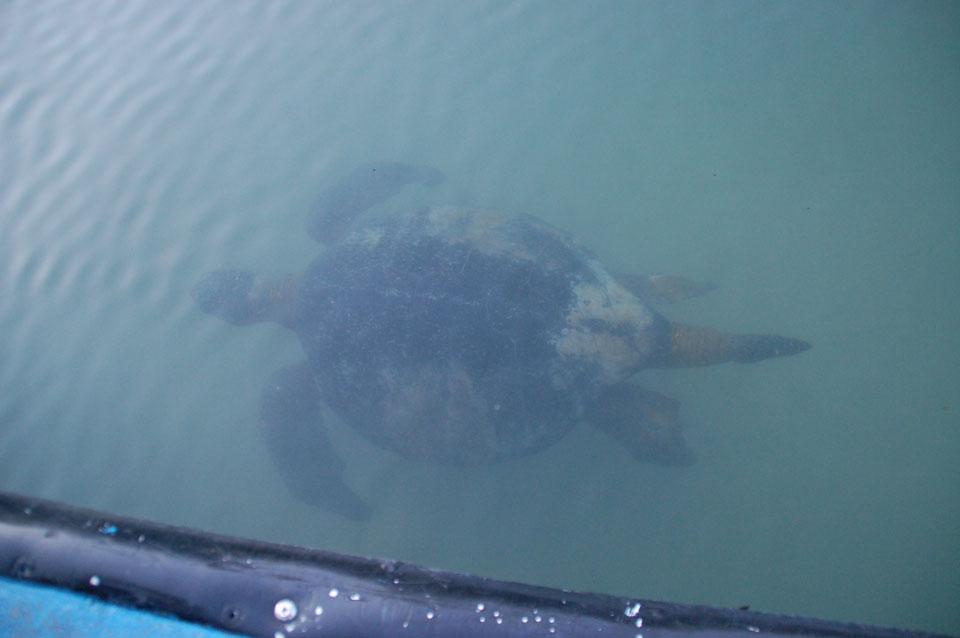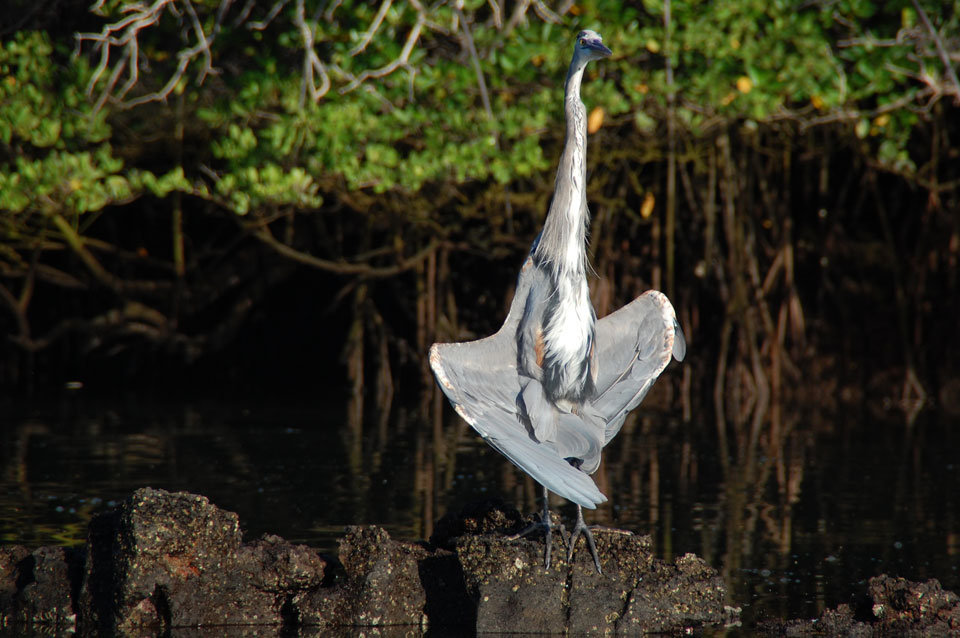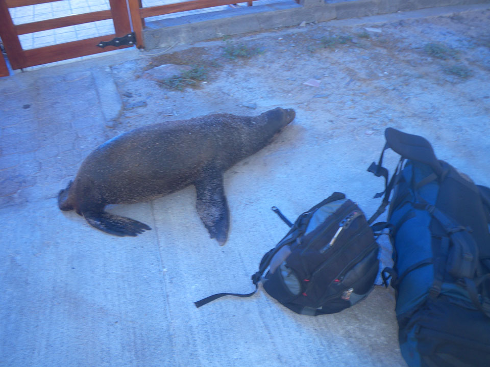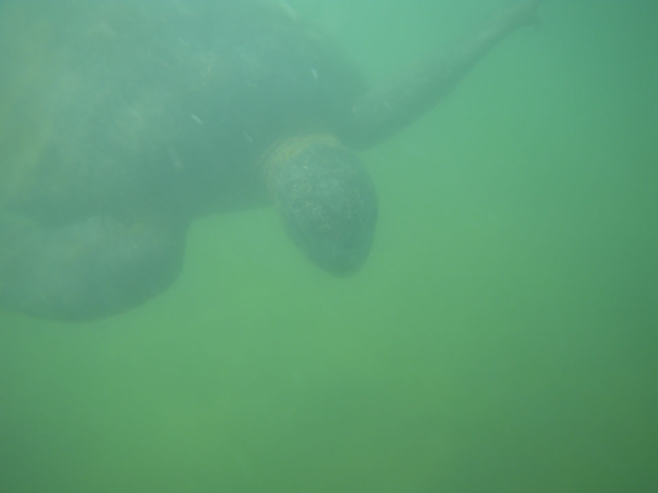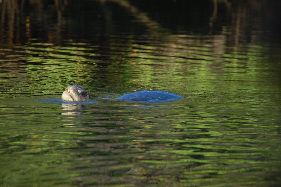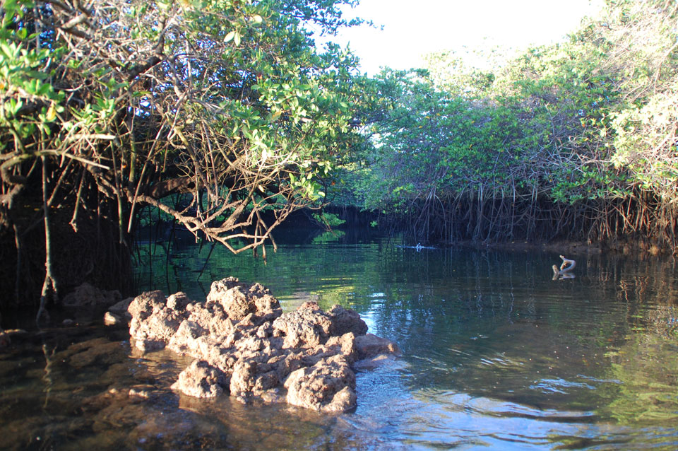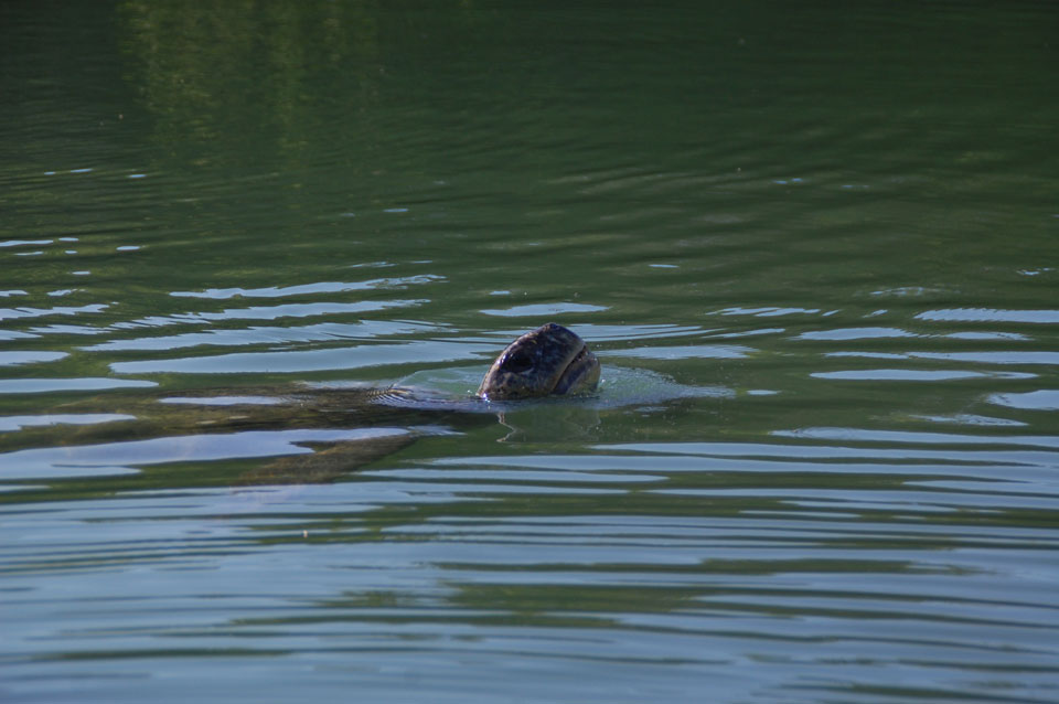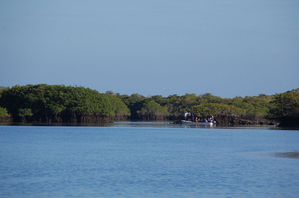 Wir hatten nur ein paar Kekse vor’m Frühstück, denn schon ganz zeitig sollte die Tour durch die Magroven starten. In Baltra nutzen viele Schildkröten das stille Wasser zur Paarung. Wir sahen einige Action dort – so viele Schildkröten um uns herum, die ab und zu mal auftauchten und hörbar nach Luft schnappten. Baby-Haie schwammen auch herum und Vögel gab’s natürlich auch wieder.
