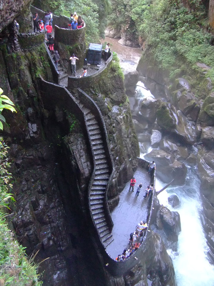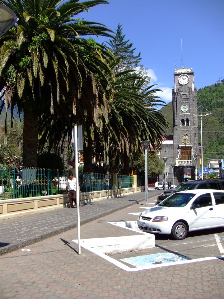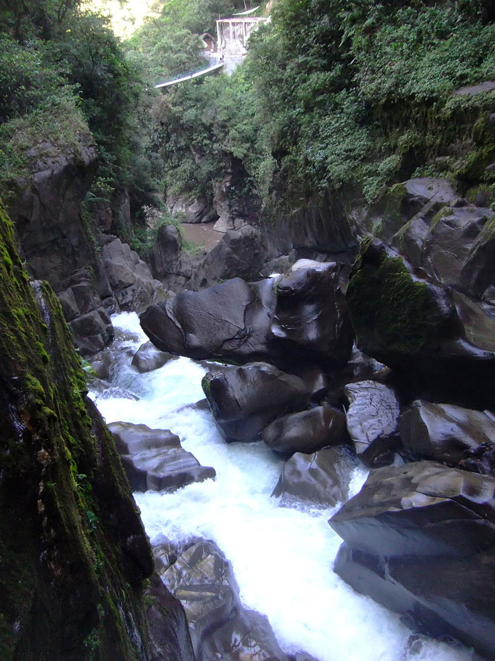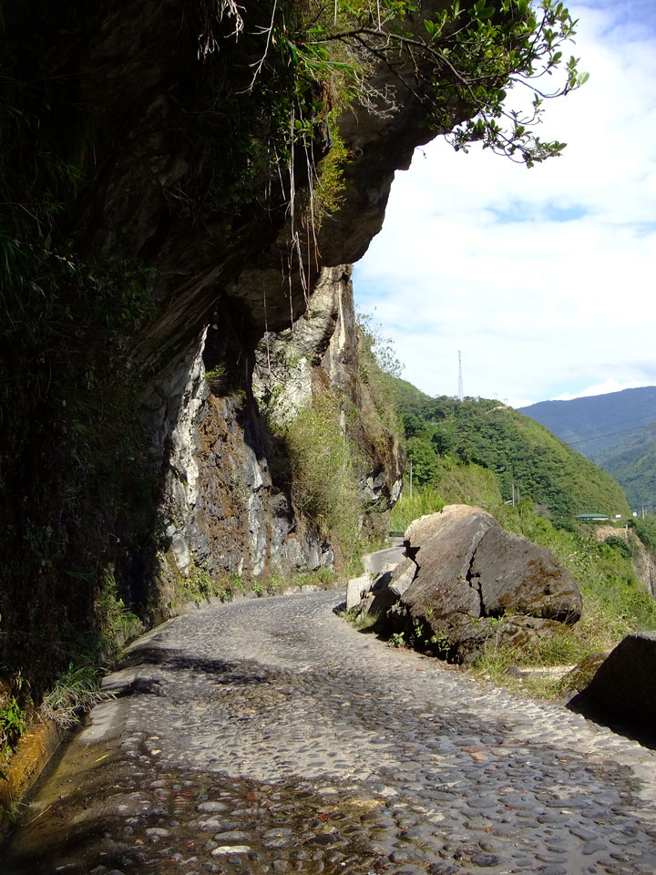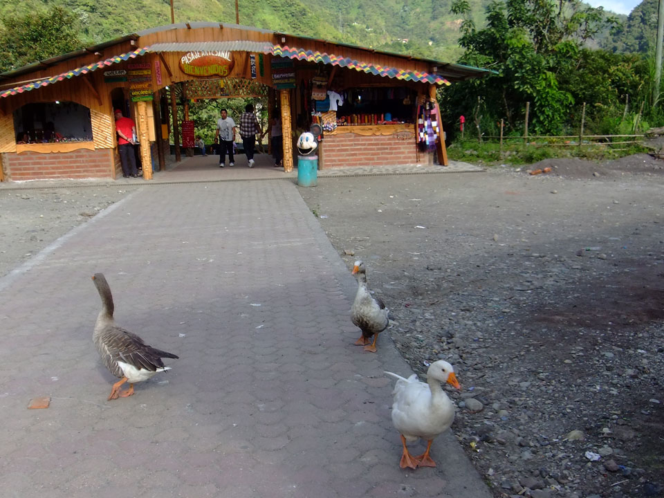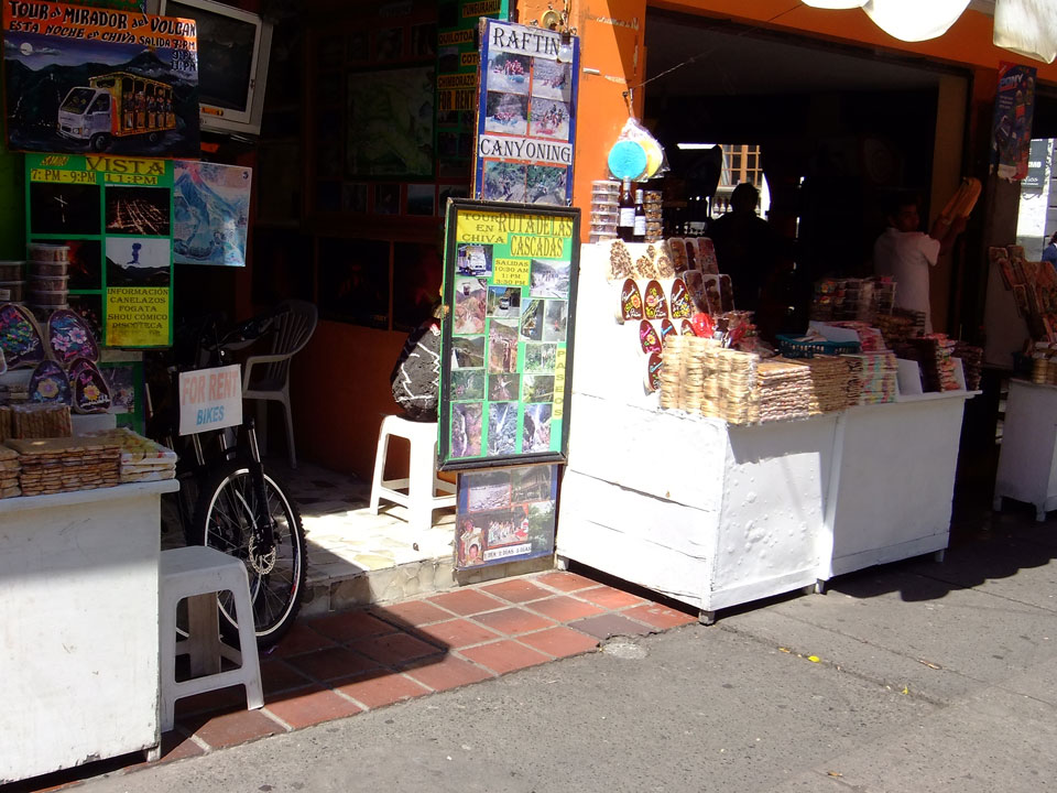 Ganz nett die ganze Sache, viel Sonne und die Straße auch in gutem Zustand. Einige Mal musste man am Tunnel vorbei auf dem Fahrradweg. Die Berge rings um Baños sind eindrucksvoll, viele Wasserfälle. In der Höhe der Berge waren auch so manche Canopys aufgezurrt. Für $10 hätte ich was machen können, alleine aber uninteressant. Bungie gibt’s auch, es gibt eben alles.