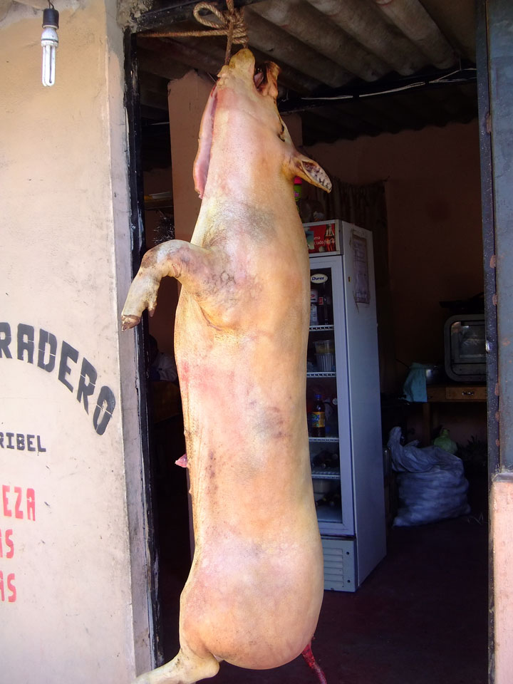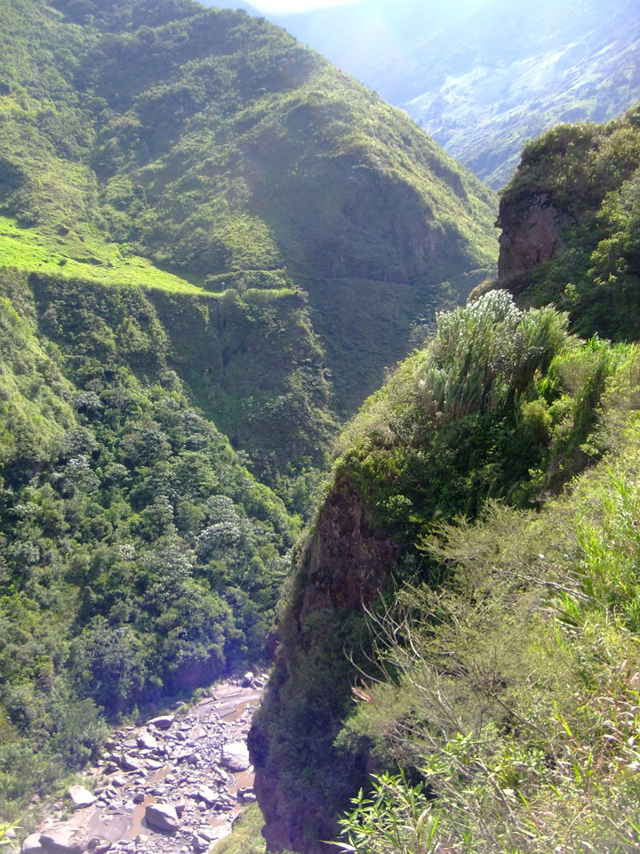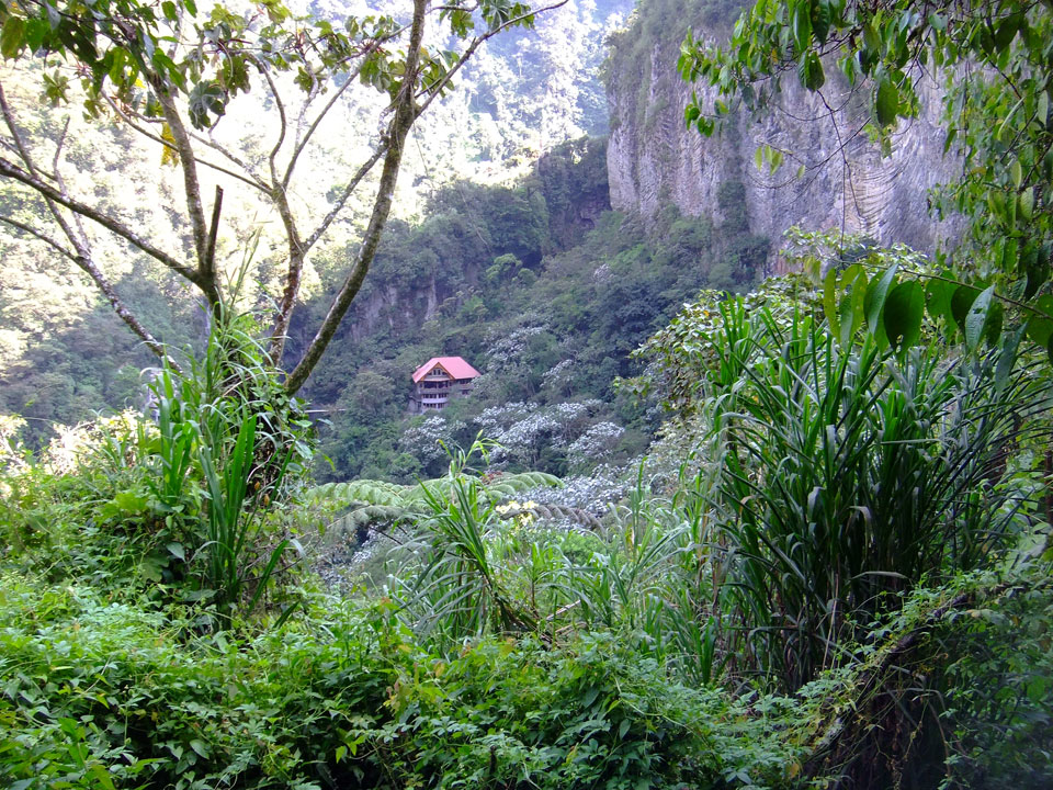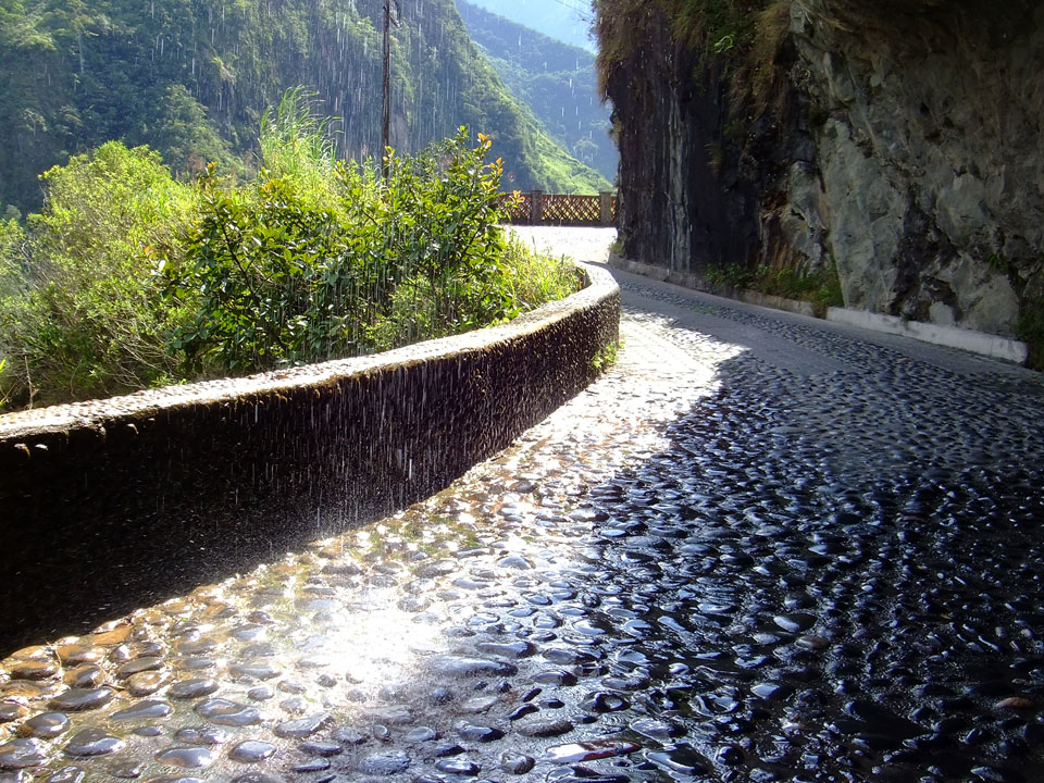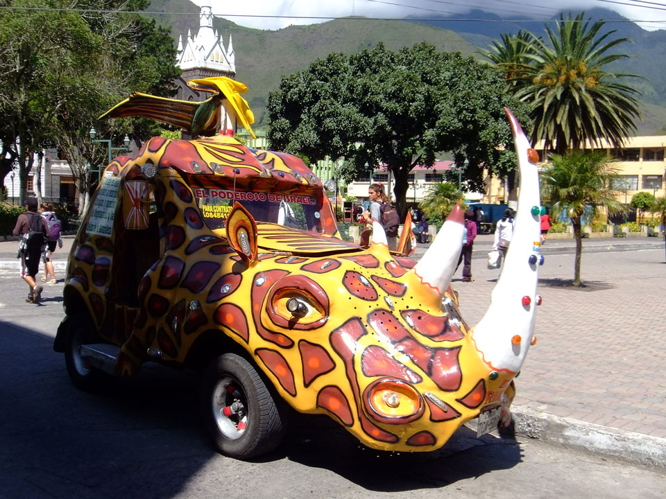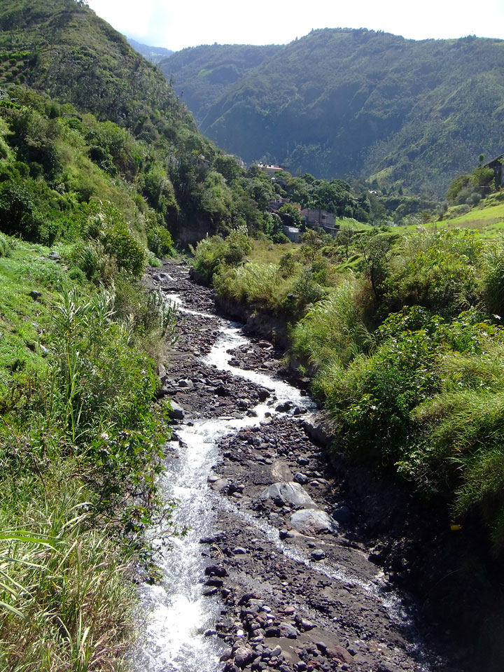 Ganz nett die ganze Sache, viel Sonne und die Straße auch in gutem Zustand. Einige Mal musste man am Tunnel vorbei auf dem Fahrradweg. Die Berge rings um Baños sind eindrucksvoll, viele Wasserfälle. In der Höhe der Berge waren auch so manche Canopys aufgezurrt. Für $10 hätte ich was machen können, alleine aber uninteressant. Bungie gibt’s auch, es gibt eben alles.