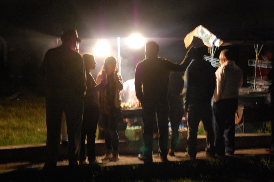 Bis nach 23:00 gab es ein Comedy Programm. Es wurde bitterkalt und ich fror, während ich null Witze verstand. So hatte ich ’nen Meiskolben und wartete auf die Abfahrt. Das dauerte und dauerte, so viel Comedy um’s Lagerfeuer. Das Feuer brannte nieder und nach über einer Stunde in der Kälte ging’s endlich wieder nach Hause. Mehr Spanish müsste man können.