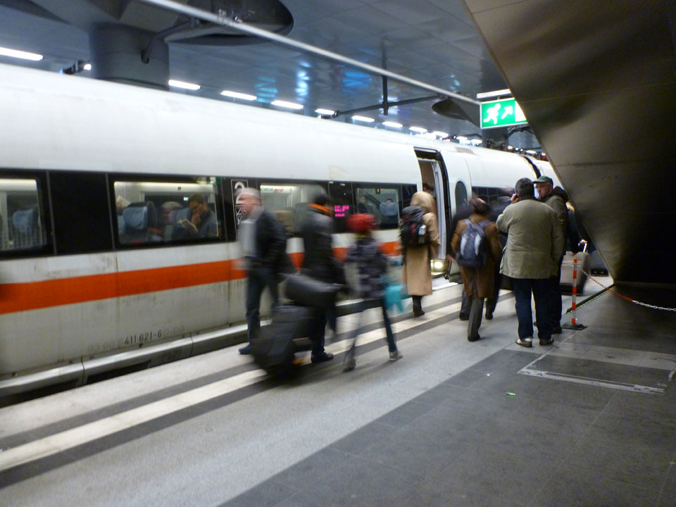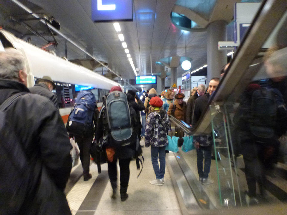 Eine Stunde geschlafen, mit Stress zum Bahnhof aber doch viel Zeit. Das Gepäck zur Winterzeit braucht Muskeln.