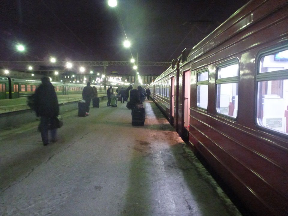 Den Aeroexpress (RUB 380) sah ich gerade wegfahren, wenig später die 45′ Fahrt nach Moskau, dann mit der Metro wieder zur Arbatskaya in’s Hostel. Um die RUB 1.900 Rest gezahlt und erst mal relaxen. Ein brasilianischer Vater mit Söhnen hier – die Kälte muss denen noch mehr zusetzen.