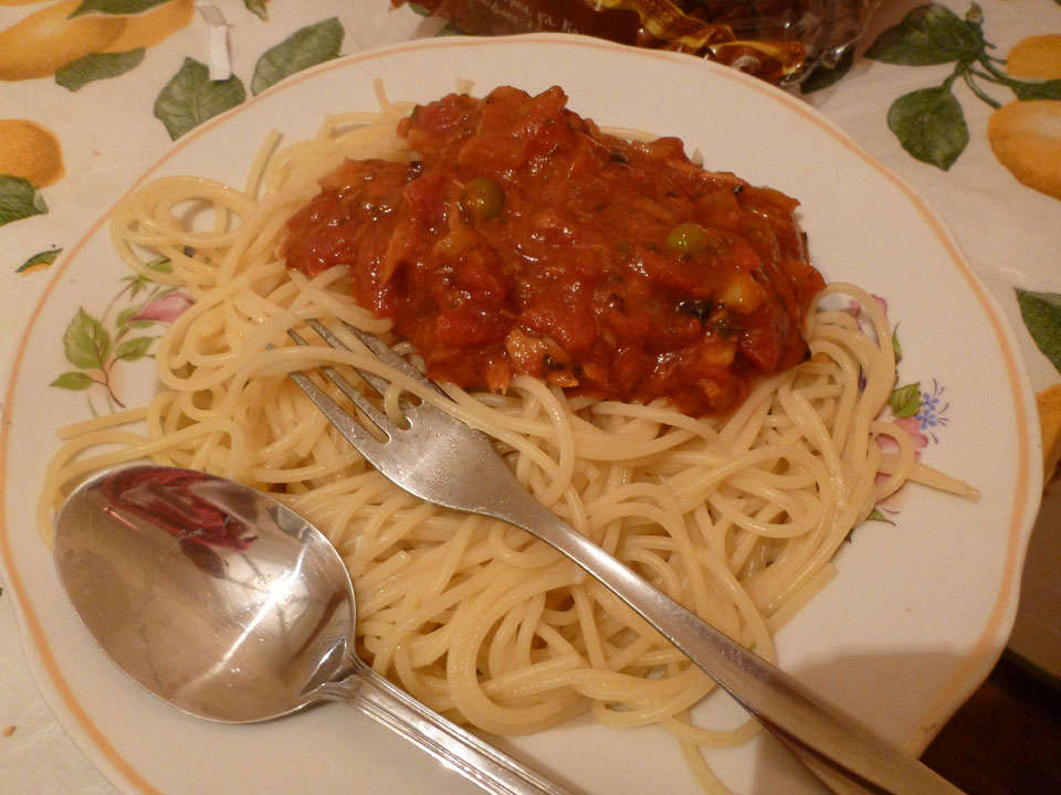 Der Tag verging schnell. Abends kochte ich Spaghetti und aß dann auch zwei Mal.