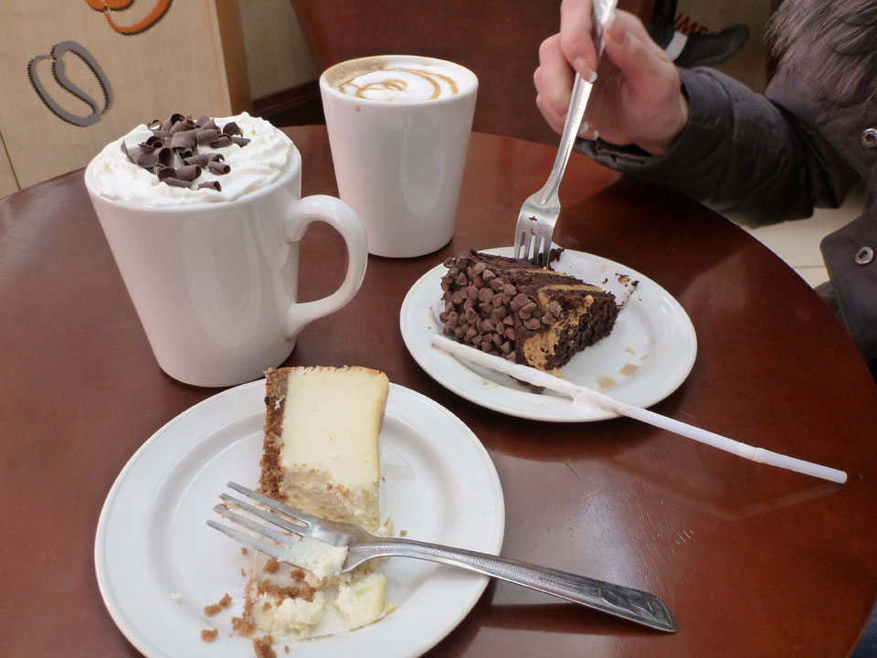 In vielen Geschäften wurde geschaut. Ich brauchte erst mal etwas Zucker und bekam den mit einem Vienna Café + Cheesecake. An vielen Taschen war einiges gut, dann anderes nicht. Es wurden gut 15 verschiedene Parfüms probiert – auch nicht das richtige. Am Ende zogen wir immer wieder mit leeren Händen aus den Geschäften.