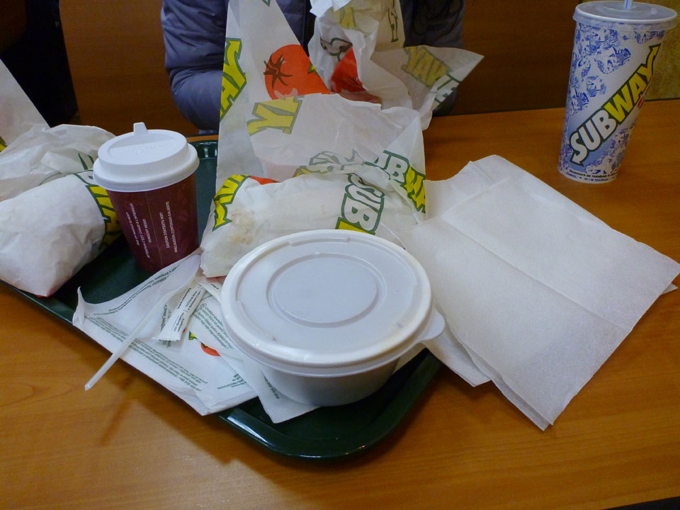 Bei Subway einen Imbiss, dann noch etwas Proviant für die Zugfahrt und langsam in’s Hotel. Im Hotel wurde einer besoffen abtransportiert.