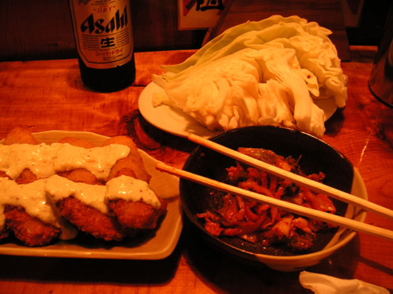 Während es also am Tag das normale Programm gab, spazierte ich gegen Abend bissel auf der K-Road entland. Da gibt es von 2nd Hand Kleidung, Musikläden, Camper-Bedarf und Elektronik so ziemlich alles. Mich erinnerte das mit den bunten Schildern bissel an Californien. Döner, Pizza, Sushi und vegetarische Retaurants sind da quasi nebeneinander zu finden. Ich bin in einen japanischen Pub für kleine gegrillte Spieße. Dort bestellte ich allerdings was anderes: Kimchi (kalter eingelegter Salat, gebackene Muscheln, grüner Tee Eis und ein Bier). Ich hatte wohl die leckeren Spieße mangels Bildern leider übersehen. Eine ganze Seite war reserviert mit allen möglichen Kombinationen. Andermal… Lustig war auch, dass man als Vorspeise eine zerhackten Salatkopf bekam. Die Blätter schmecken zwar mit Sojasoße aber bis man da was mit den Stäbchen (oder später Händen) auseinandergefriemelt hat, geht der Spaß schnell vorüber. Das Essen war OK aber nicht so toll.