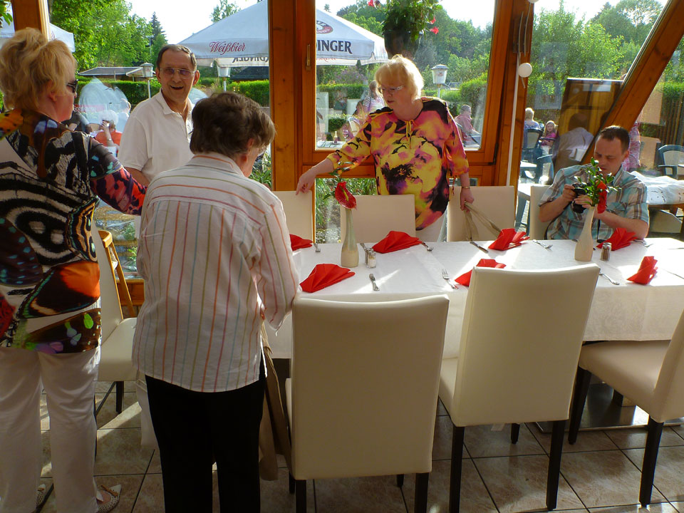 In Chemnitz wurde ich abgeholt und wir fuhren zum Rosarium. Das Wetter fantastisch aber wir hatten einen Tisch drinnen. So war es sehr warm. Auf’s Essen warteten wir auch eine ganze Weile. Mir schmeckte mein Rumpsteak nicht so, den anderen teilweise besser. Insgesamt bevorzuge ich andere Restaurants in Chemnitz, das nächste Mal eben.