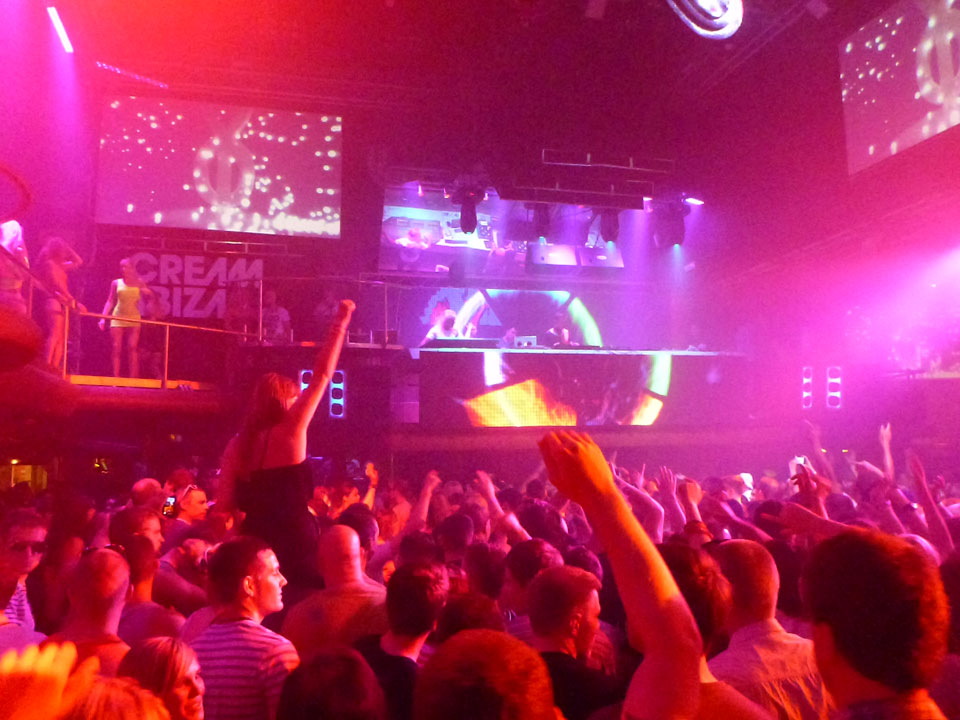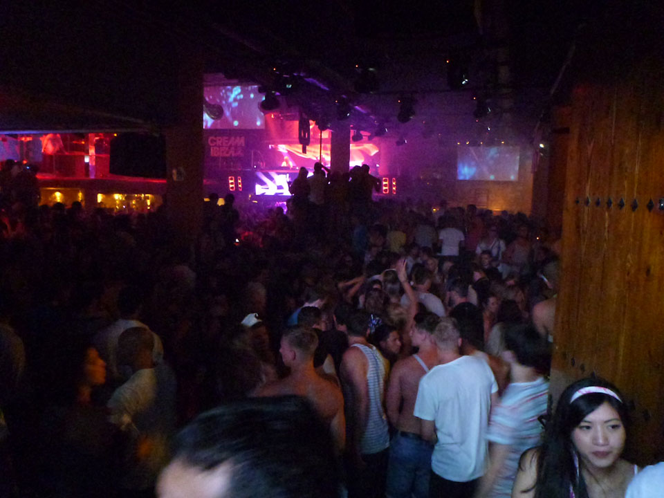 Eine Stunde legte ich michg noch hin, bevor es in’s Amnesia ging. Da war die Cream Opening Party. Massig Leute, hauptsächlich Engländer. Selten sah ich so viele falsche Wimpern und Tribal Tattoos auf einmal.