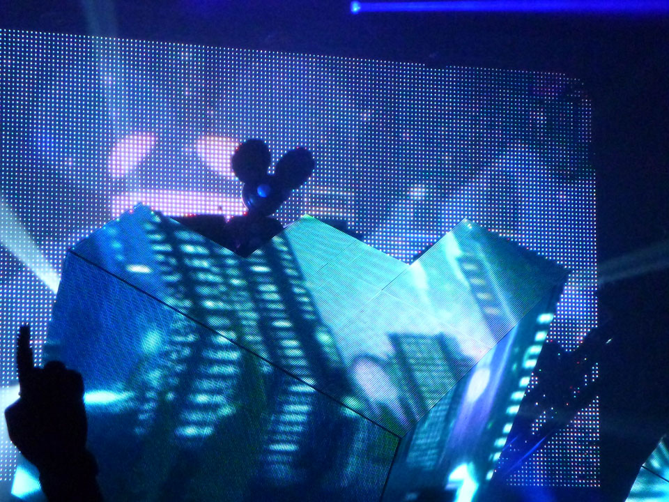 Drinnen war’s irre. Bei deadmau5 war kaum tanzen möglich – tolle Show bei vollem Haus. Zwei riesige Floors voller junger Leute – ich fand’s OK und ging schon 20′ vor dem Ende um 6.