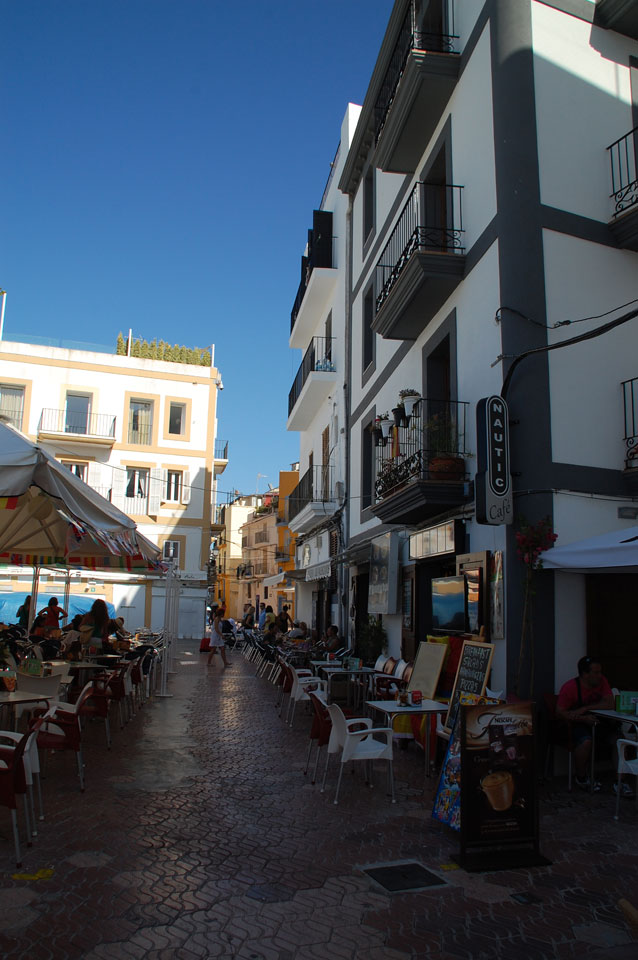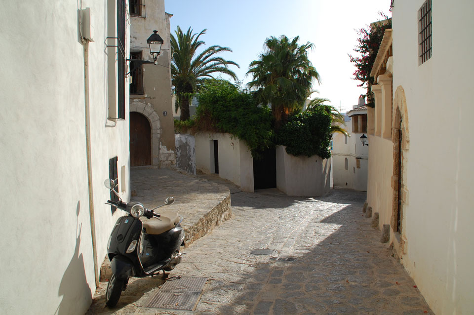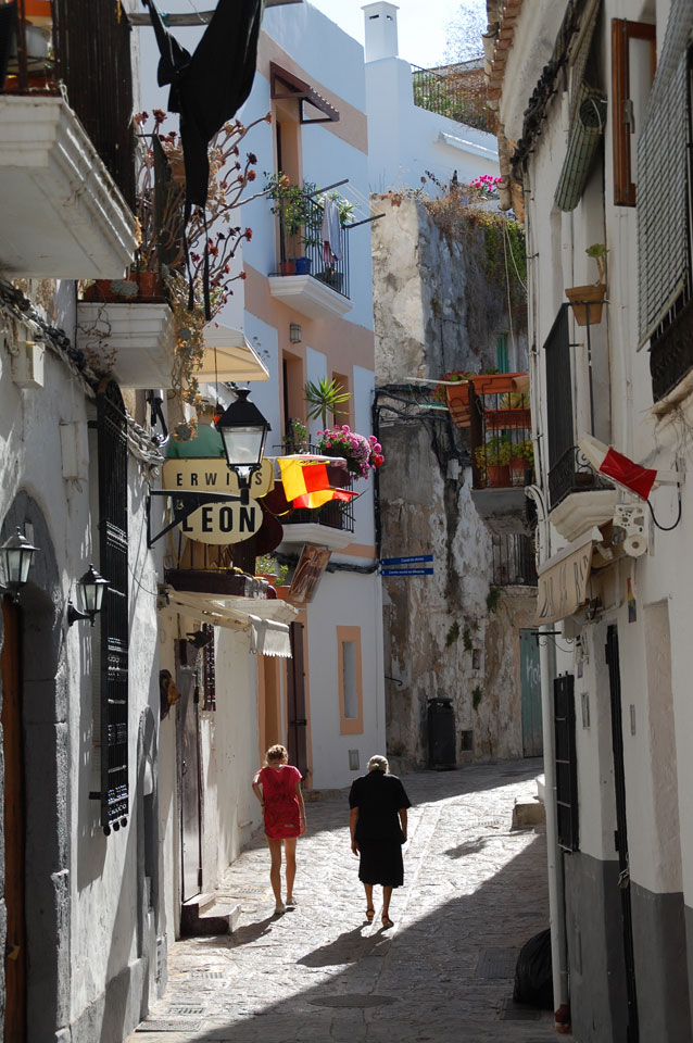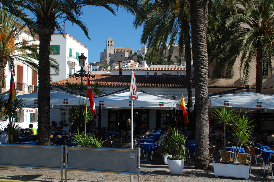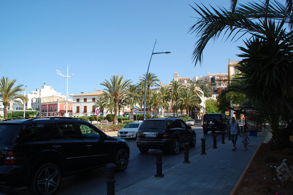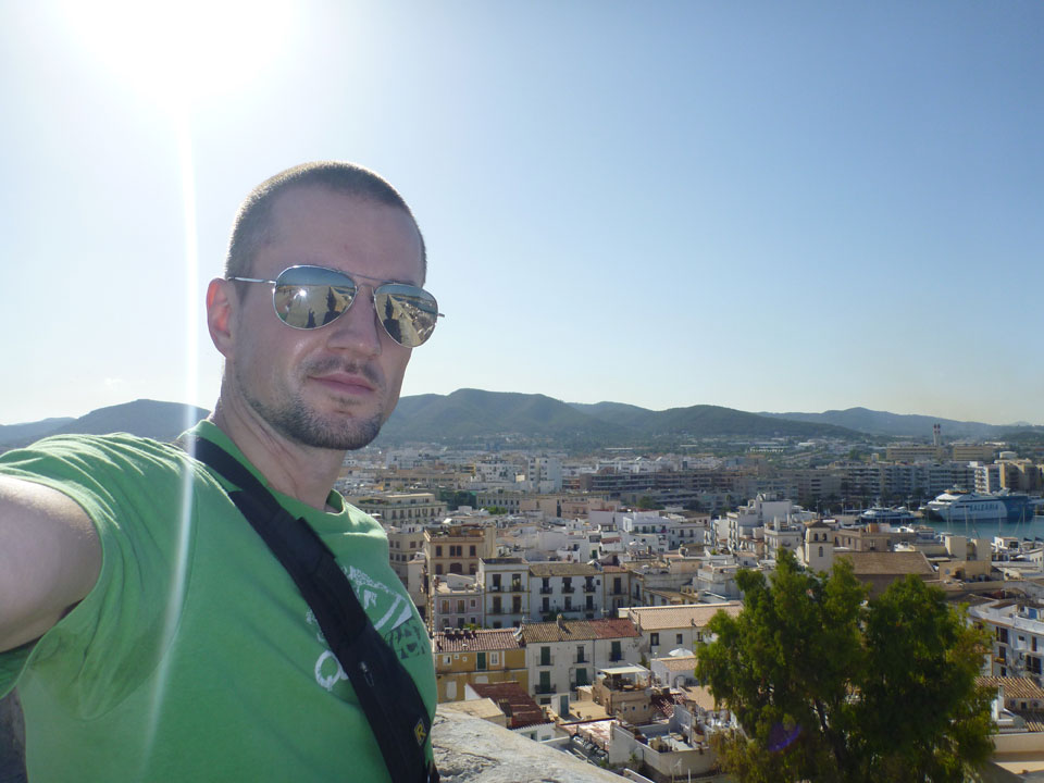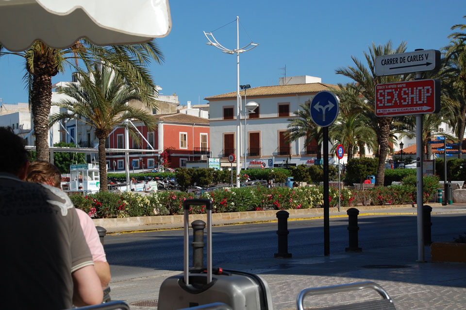 Ich legte mich etwas hin, ging das letzte Mal baden und schwang mich zurück in’s Hotel. Bevor die Müdigkeit zu groß wird, wollte ich noch Ibiza Stadt – Eivissa – sehen. Ich schaute arg übernächtigt aus der Wäsche, die alte US-Sonnenbrille war heute nützlich.