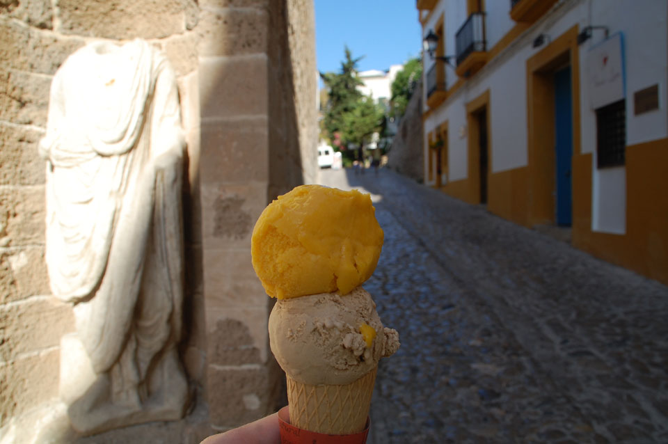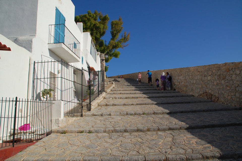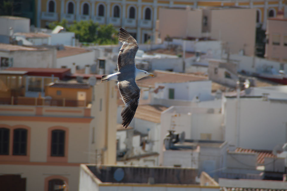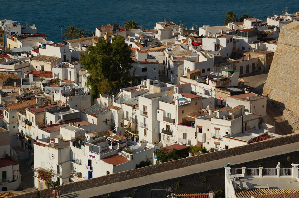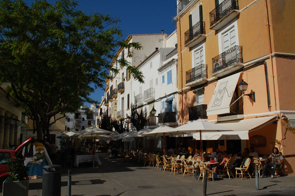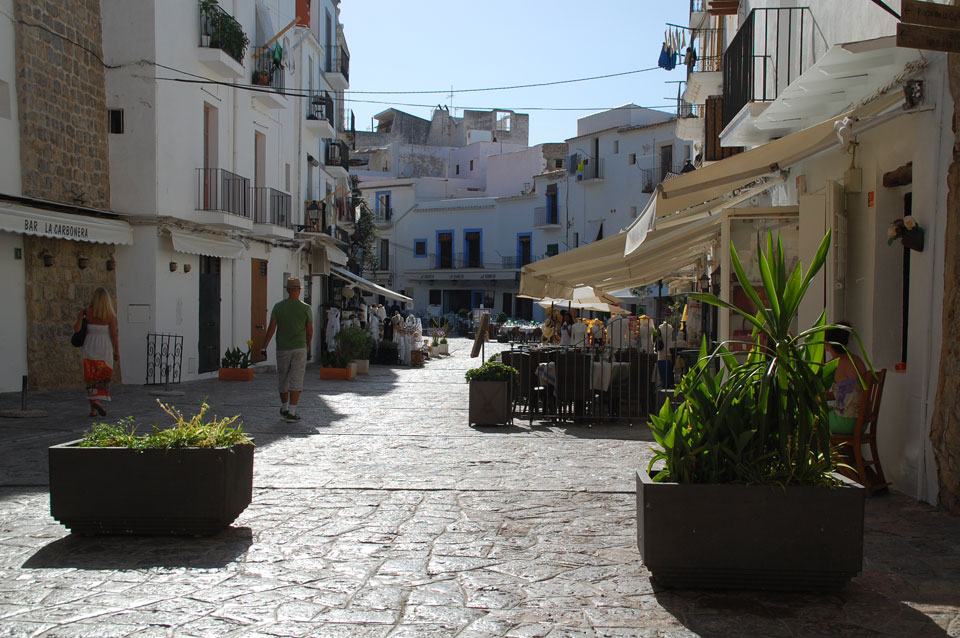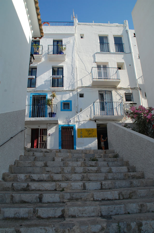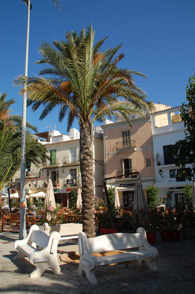 Ich legte mich etwas hin, ging das letzte Mal baden und schwang mich zurück in’s Hotel. Bevor die Müdigkeit zu groß wird, wollte ich noch Ibiza Stadt – Eivissa – sehen. Ich schaute arg übernächtigt aus der Wäsche, die alte US-Sonnenbrille war heute nützlich.