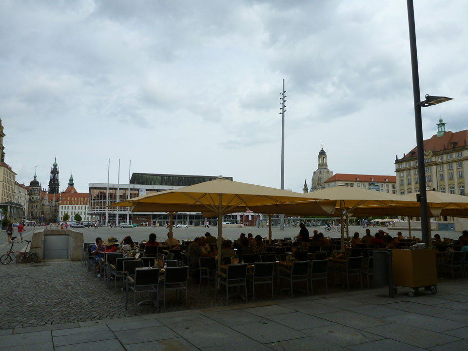 Pünktlich aufgestanden, auf den letzten Drücker noch Frühstück und dann ausgecheckt. Alles gut und jetzt etwas Zeit. In Dresden war die Prager Straße ruhig. Ich saß etwas an einem Brunnen, ging dann zur Frauenkirche.