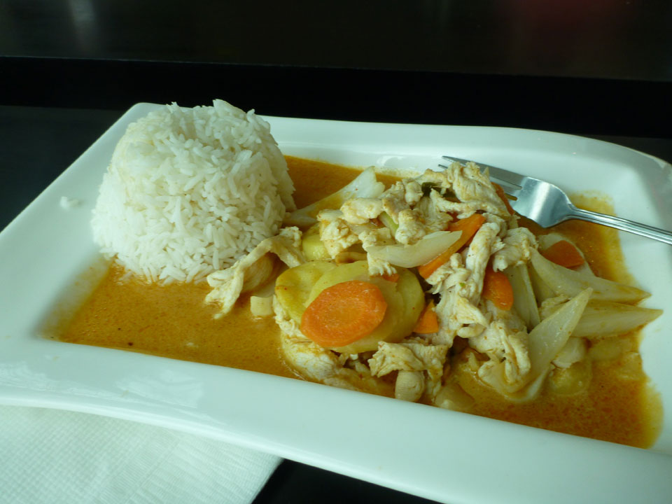 In Berlin hatte ich erst mal einen leeren Magen und ging beim Asiaten essen. Das Massaman Curry war super und mit €6 auch günstig. Dann mit dem Bus nach TXL, alles wie gehabt.