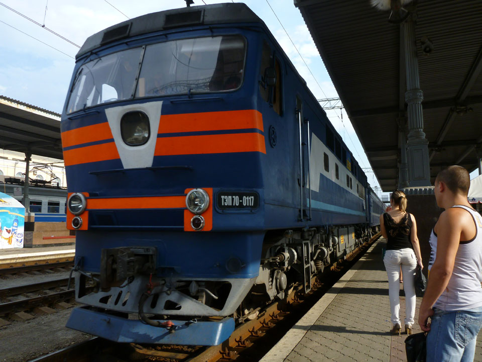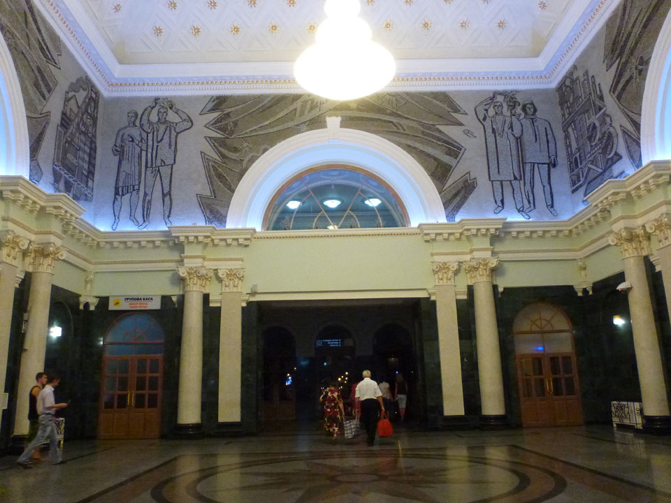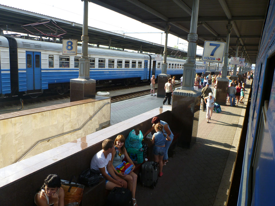 Nach Mitternacht in Donetsk. Ich ging zum Fahrkartenschalter und holte mir gleich das Ticket für die Weiterfahrt. Am 9. gab’s keinen Nachtzug – tagsüber dann von 12.21 bis 22:35. Na gut – UAH 186 (€19). Die Bahnpreise sind günstiger als in Russland.