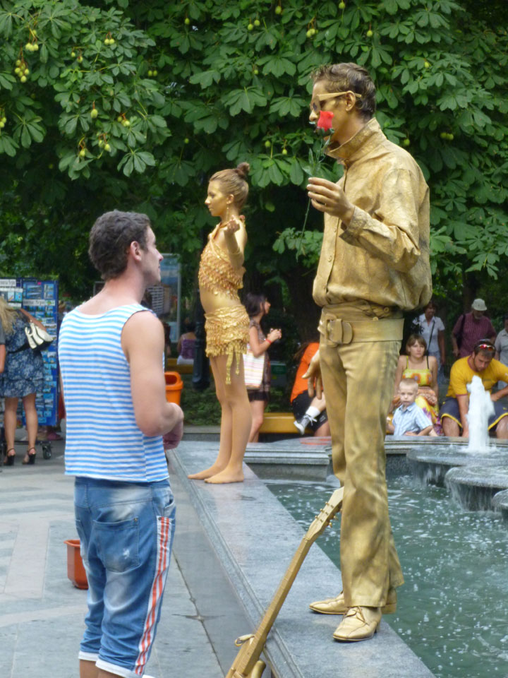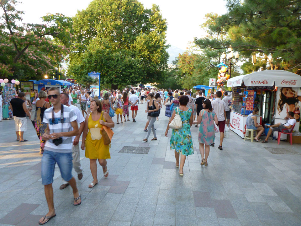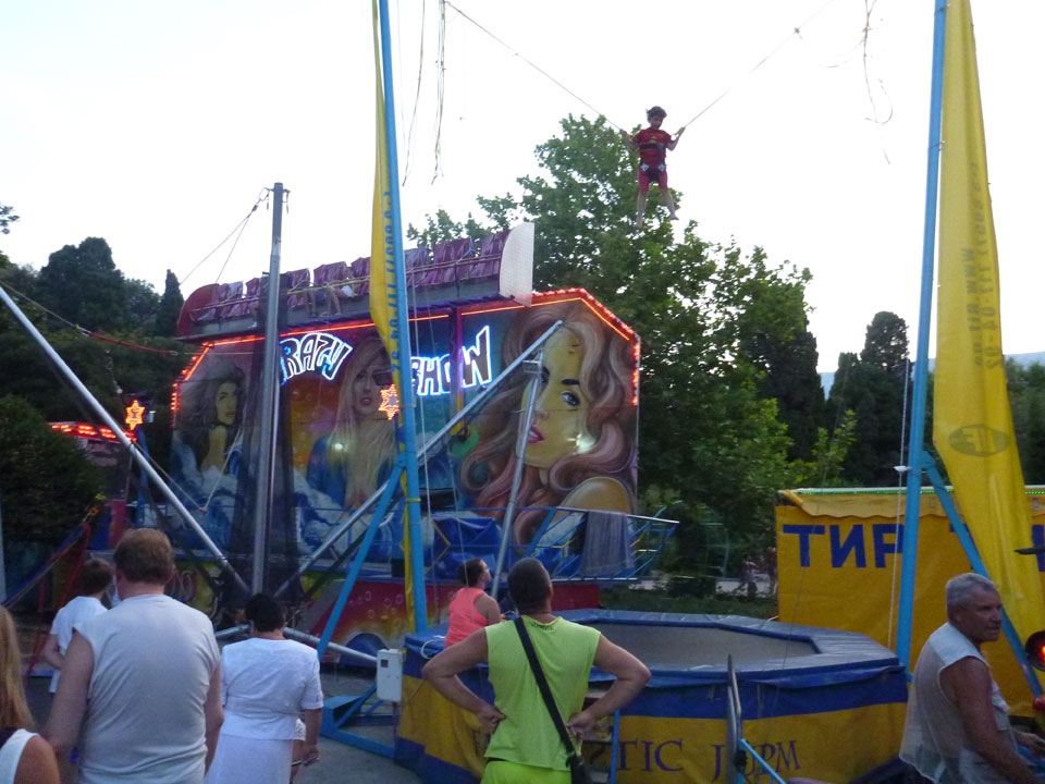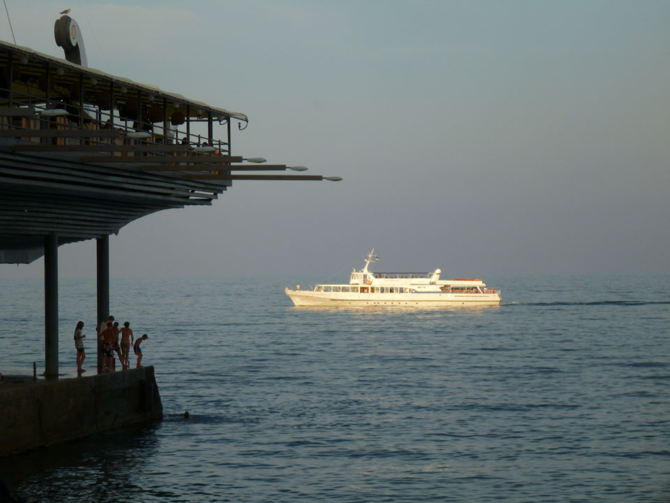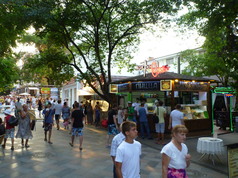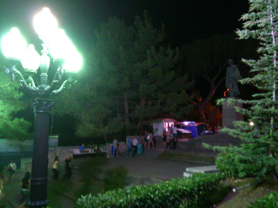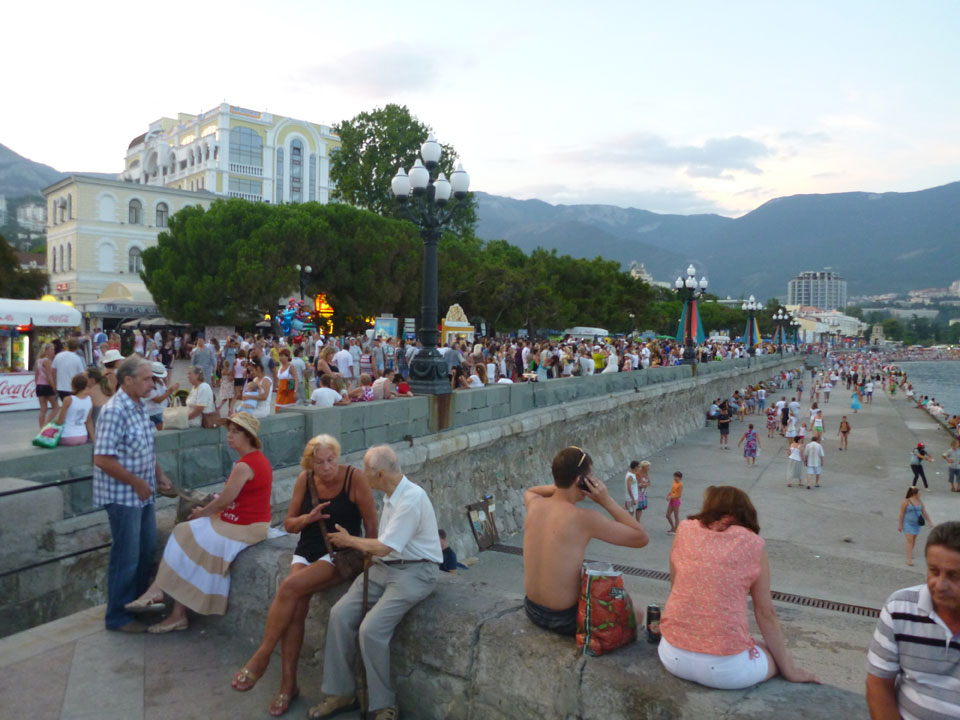 Yalta hatte heute Geburtstag. Das Feuerwerk hörte ich noch aus der Entfernung. Die Hostel-Besitzer können mir keine Nightlife-Tips geben, mögen wohl andere Musik. Nachts ging ich noch los. Ich wollte das im Internet empfohlene Matrix checken, das war doch der gleiche Club – das IKON. Für 150 UAH Eintritt (€15) war eben nichts los. Ich verschwand wieder, ging die Strandpromenade entlang mit den vielen Leuten da. Ein Royal Blinni war das zweite Essen heute und dann versuchte ich doch noch, das Nightlife zu checken.