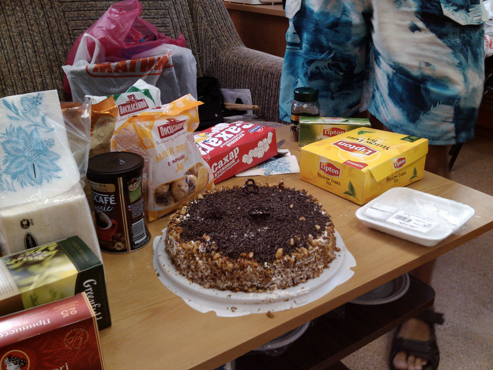 Gegen 18:00 kam der Microsoft Entwickler mit einem Kuchen. Ich hatte eigentlich eine kleine Party geplant aber so machte er seinen Abschied im Büro. Wir plauderten bis 19:00 über den Job und die Fahrt nach Amerika. Mit dem Arbeitsvisum kommt er ja dank russischem Pass nicht ganz so leicht aus dem Land. Alles Gute!