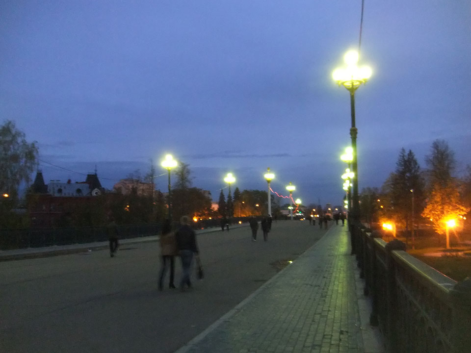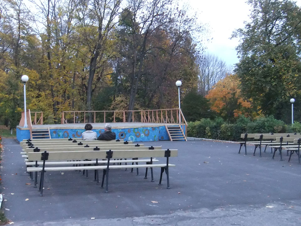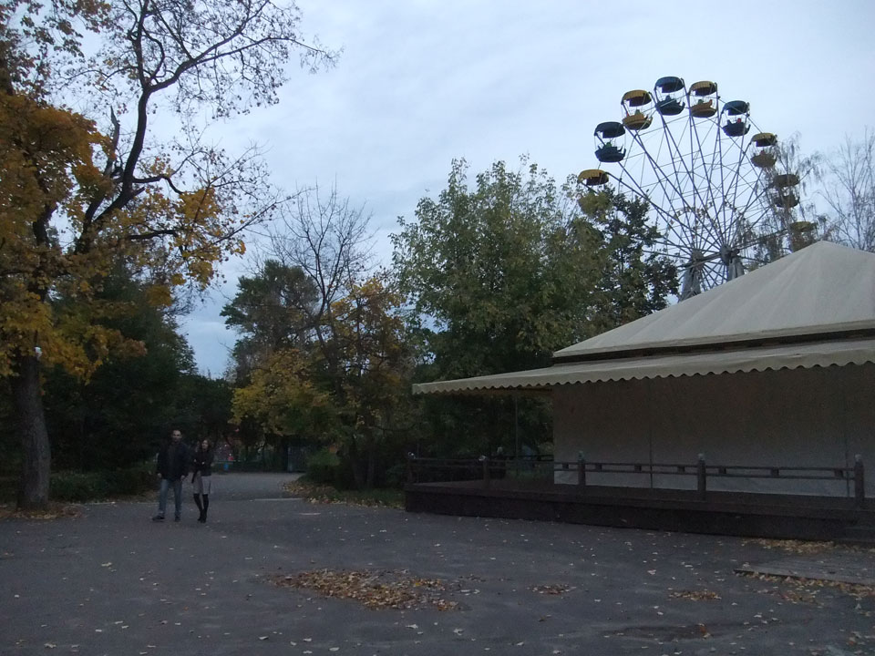 Mit dem bedeckten Himmel lag auch eine etwas ruhigere Stimmung über dem Park. Die ganzen bunten Geschäfte hatten geschlossen, ein paar Leute spazierten umher. In Russland scheint es generell die Leute mehr auf die Straße zu ziehen, einfach herumlaufen ist eben auch OK.