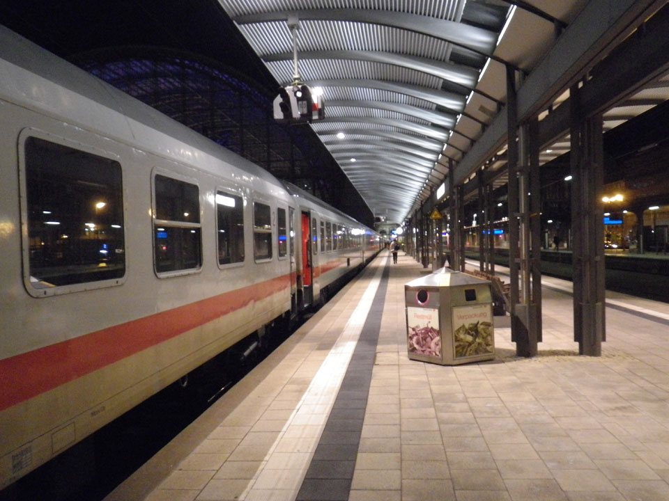 Ich ging zur Bahn, telefonierte mit dem Kundenservice, der mir dann nach 22:00 auch nicht mehr weiterhelfen konnte. Am Info-Point schaute man im Computer und bestätigte meine Daten – Zug eine Stunde zu spät da, Flieger verpasst. Mein Ticket wurde für eine morgige Rückfahrt gültig gemacht und gestempelt. Das Intercity solle ich nehmen, die Bahn sollte schon die Kosten für die Übernachtung tragen, weil es keine Verbindung mehr nach Chemnitz gibt.