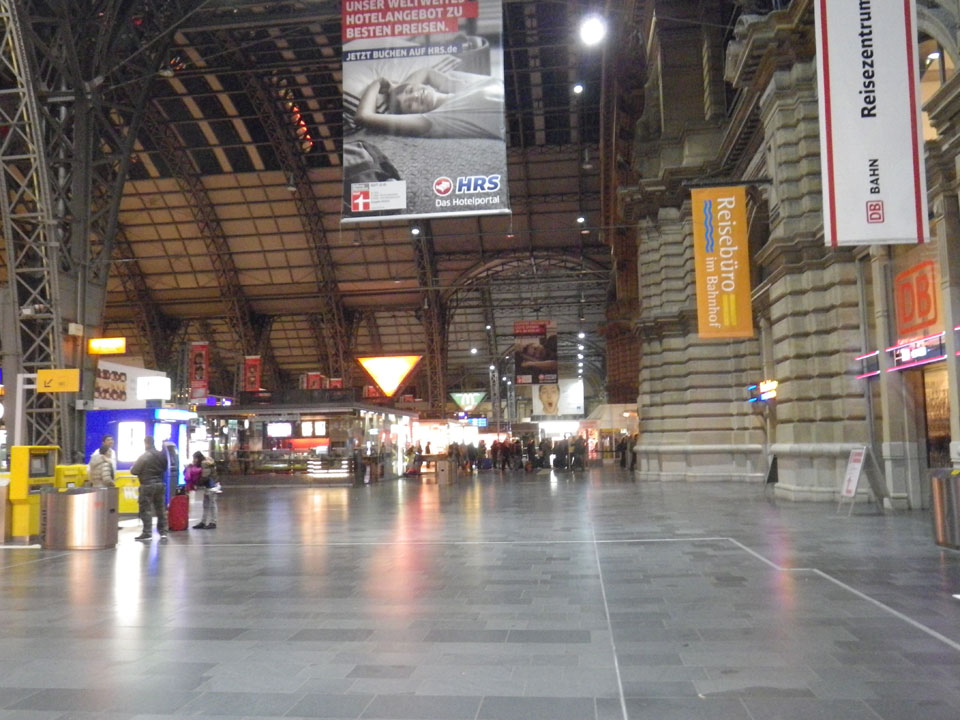 Wieder auf den Hbf, halb 12 inzwischen. Lange gewartet und meine Situation geschildert. Die Trulla sagte, dass mein Reiseziel Frankfurt Flughafen sei, ich das ja erreicht hätte und man so keinen Gutschein bekommt. Ich sagte, dass ich den Flieger dank der Bahnverspätung verpasst habe, neue Flüge ab €1500 los gehen, die ich jetzt zahlen müsste und dass ich nicht auf Frankfurt Flughafen wohne. Die Nacht müsse ich schließlich wo schlafen. Nichts zu machen mit den Bürokraten, die kann man auch auf den Mond schießen.