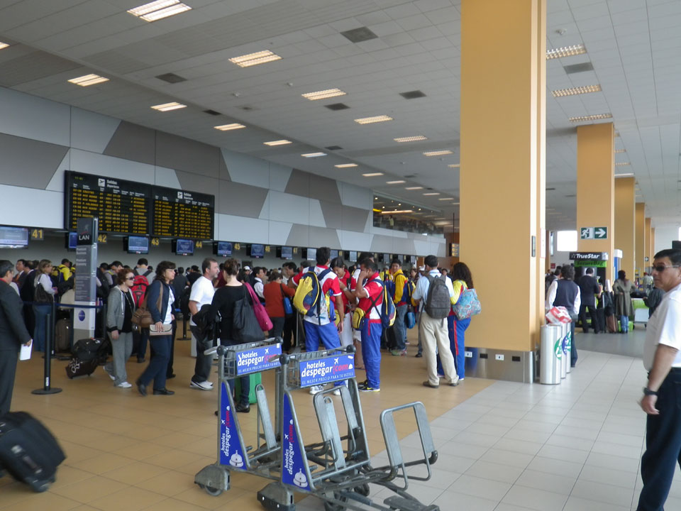 In den Stau vor’m Flughafen wollte er aber nicht und so lief ich dann zum Flughafen. Am Schalter guckte der LAN Mitarbeiter komisch, der Flug sei voll – kein Platz für mich. Ich hätte 2 Tage vorher einchecken sollen. Das war neu für mich, ich hatte den Flug ja vor fast 2 Monaten gebucht. Als LAn Pass-Kunde ist man wohl zweite oder dritte Klasse. Ich fragte nach Stand-by und er sagte, ich sollte in 45 Minuten wieder kommen.