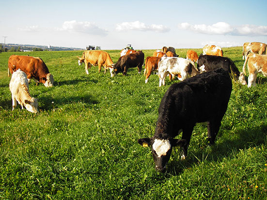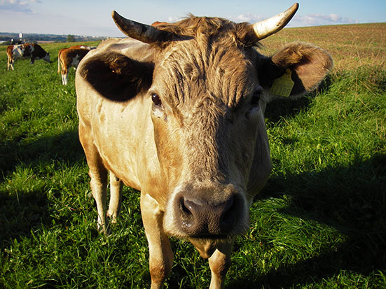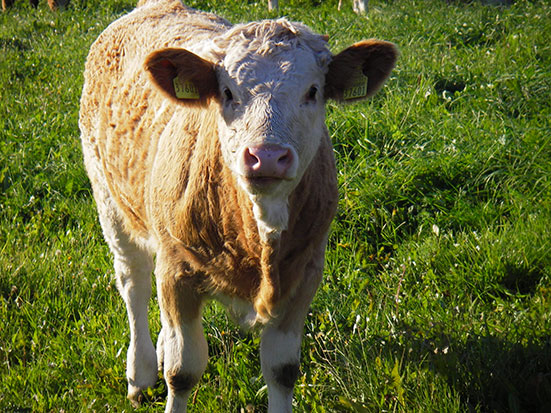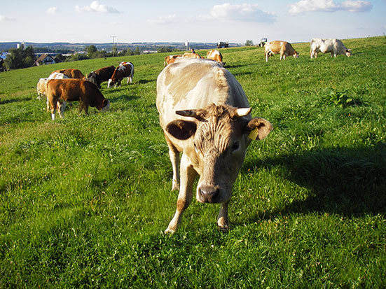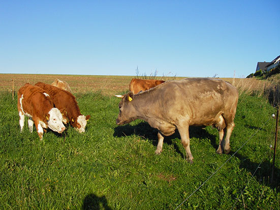 Auf dem Weg zurück blieben wir länger bei den Kühen, bis ich genug Photos hatte. Lustige Tiere, schönes Wetter. Fressen und gucken und am Ende kommen sie auf den Tisch. :-/