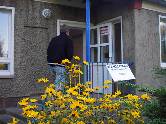Wahlsonntag. Vor 6 schafften wir es ins Wahllokal in einem Kindergarten. Ich ging mit meinem Bruder zu Fuß, nur 10 Minuten Weg. Vorbei an Kühen mit viel Methanausstoß kamen wir an. Dann ging’s schnell, wie immer.